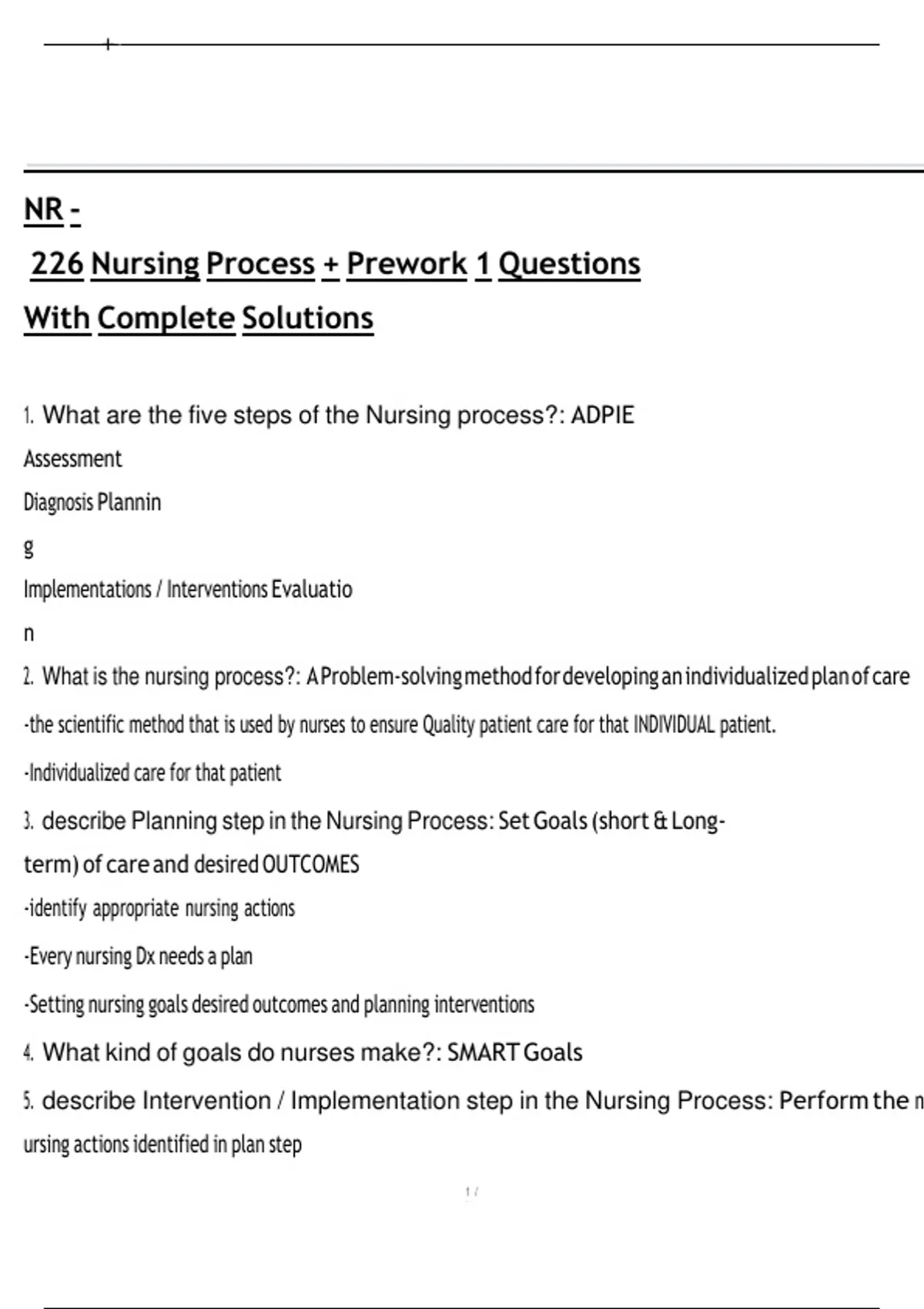 NR - 226 Nursing Process + Prework 1 Questions With Complete Solutions.pdf