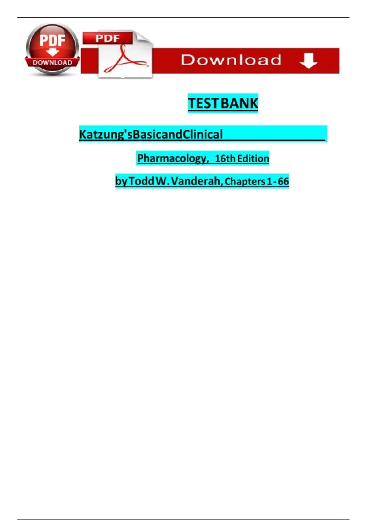 TEST BANK For Katzung's Basic and Clinical Pharmacology, 16th Edition By {Todd W. Vanderah, 2024,} Verified Chapters 1 - 66, Complete Newest Version