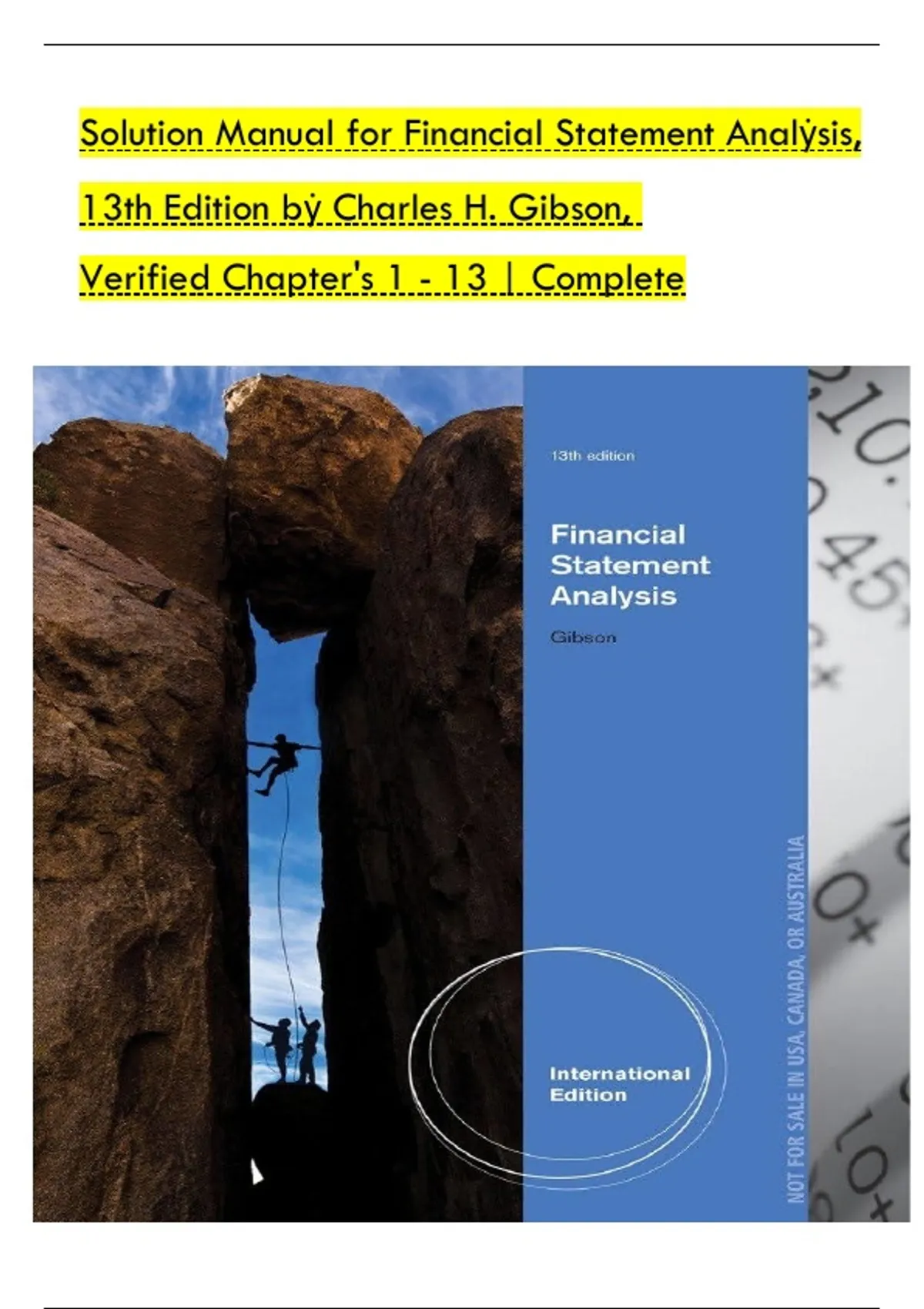 Complete Solution Manual For Financial Statement Analysis, 13th Edition By Charles H. Gibson,All Verified Chapter's 1-13 Covered With Questions And Verified Solutions.