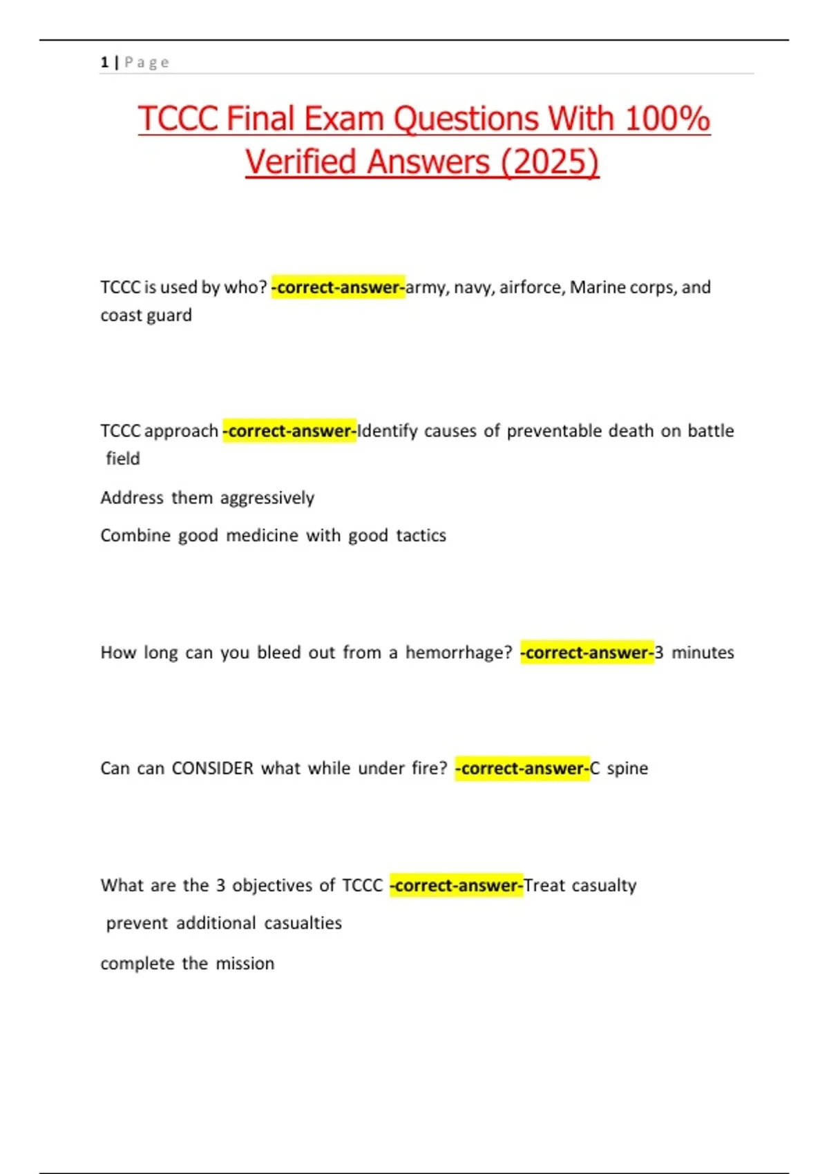 TCCC Final Exam Questions With 100%