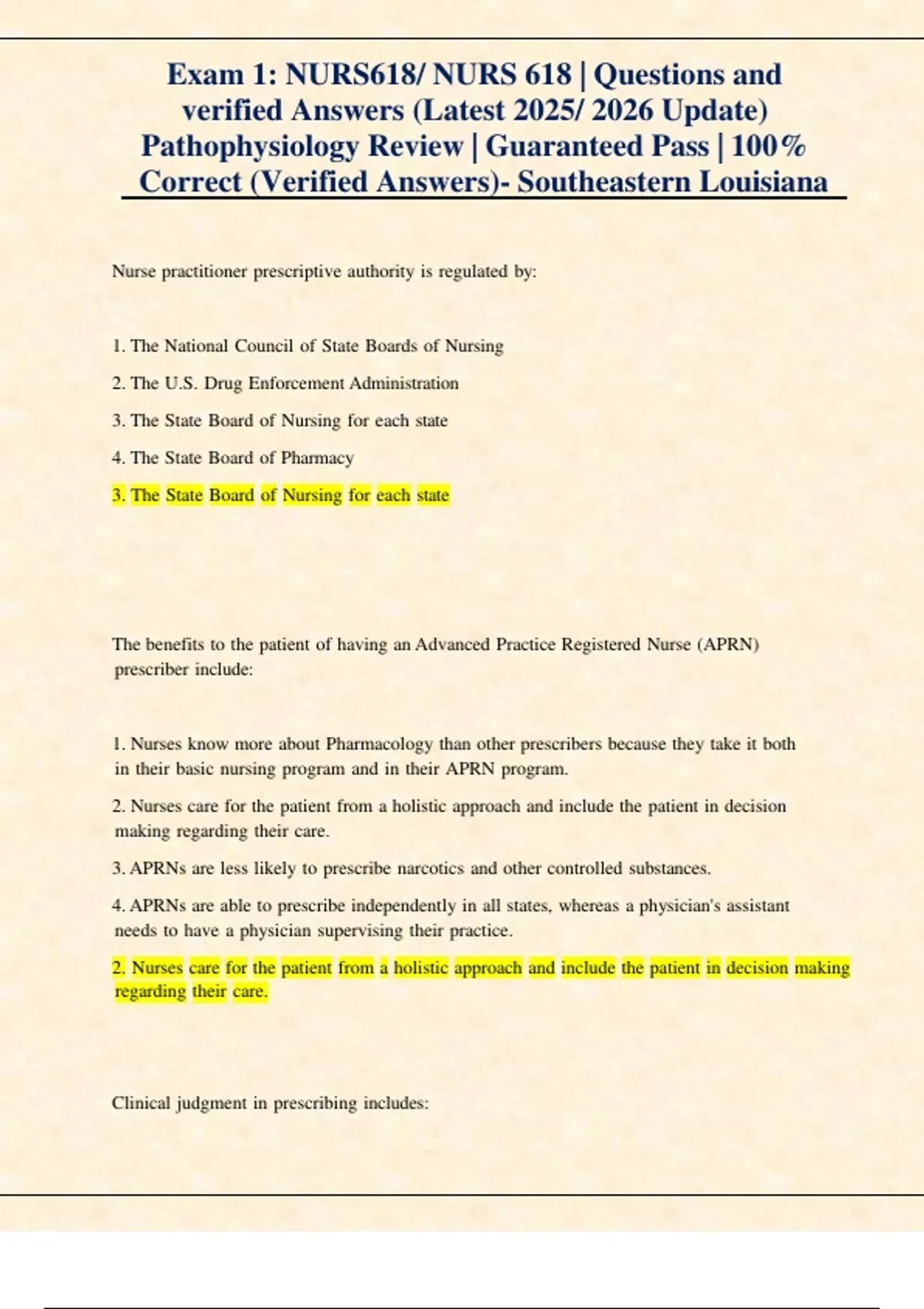 Correct (Verified Answers)- Southeastern Louisiana