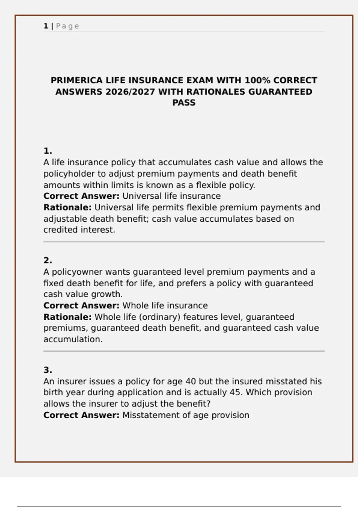 PRIMERICA LIFE INSURANCE EXAM WITH 100% CORRECT ANSWERS 2026/2027 WITH RATIONALES GUARANTEED PASS