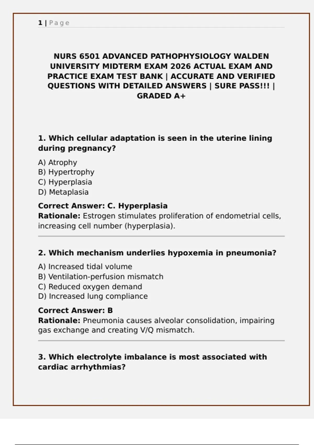NURS 6501 ADVANCED PATHOPHYSIOLOGY WALDEN