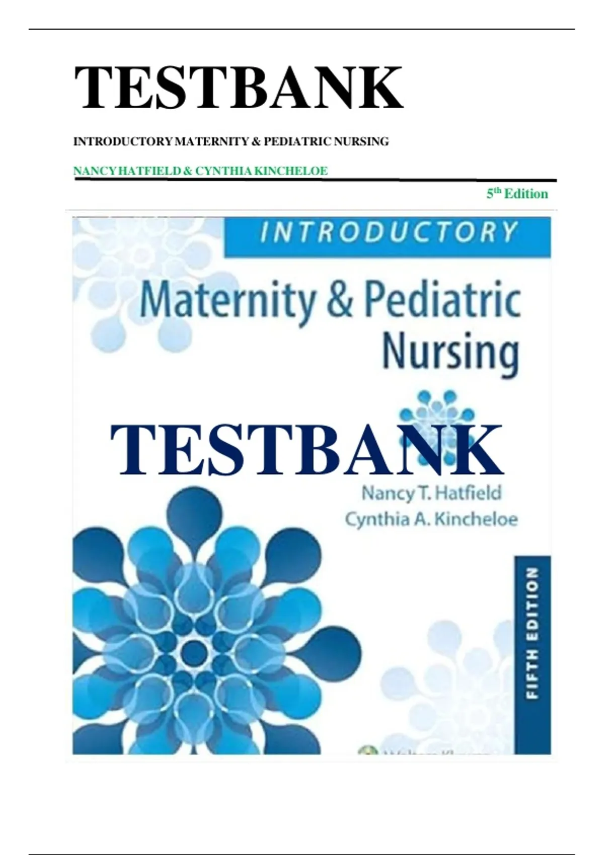 Test Bank for Introductory Maternity & Pediatric Nursing 5th Edition,by Nancy Hatfield ISBN 978-1975163785 COMPLETE GUIDE WITH RATIONALES 100% VERIFIED A+ GRADE ASSURED!!!!!NEW LATEST UPDATE!!!!!