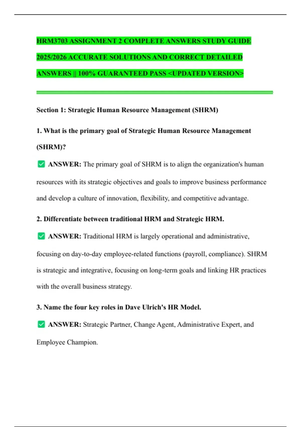 Section 1: Strategic Human Resource Management (SHRM)