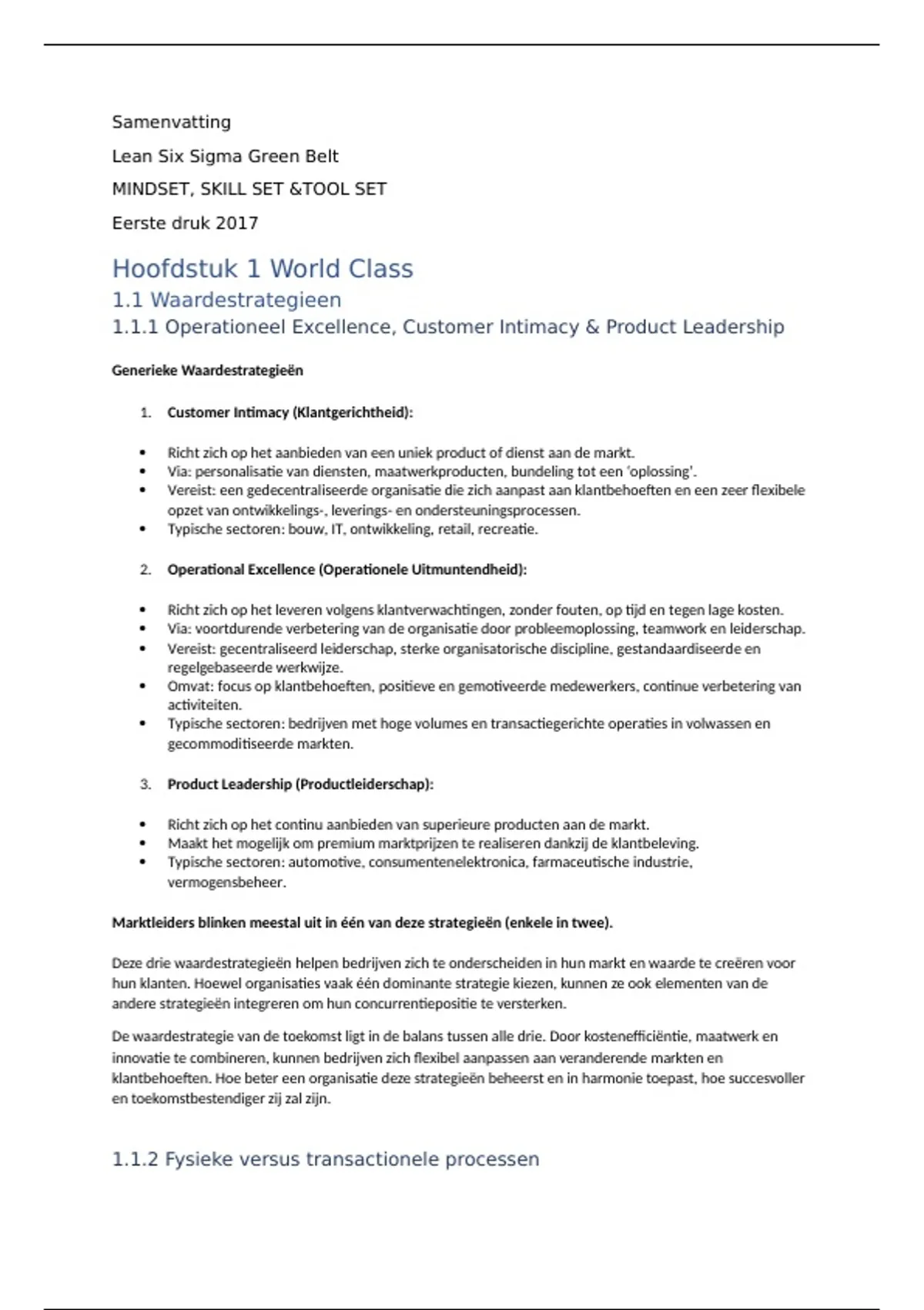 1.1.1 Operationeel Excellence, Customer Intimacy & Product Leadership