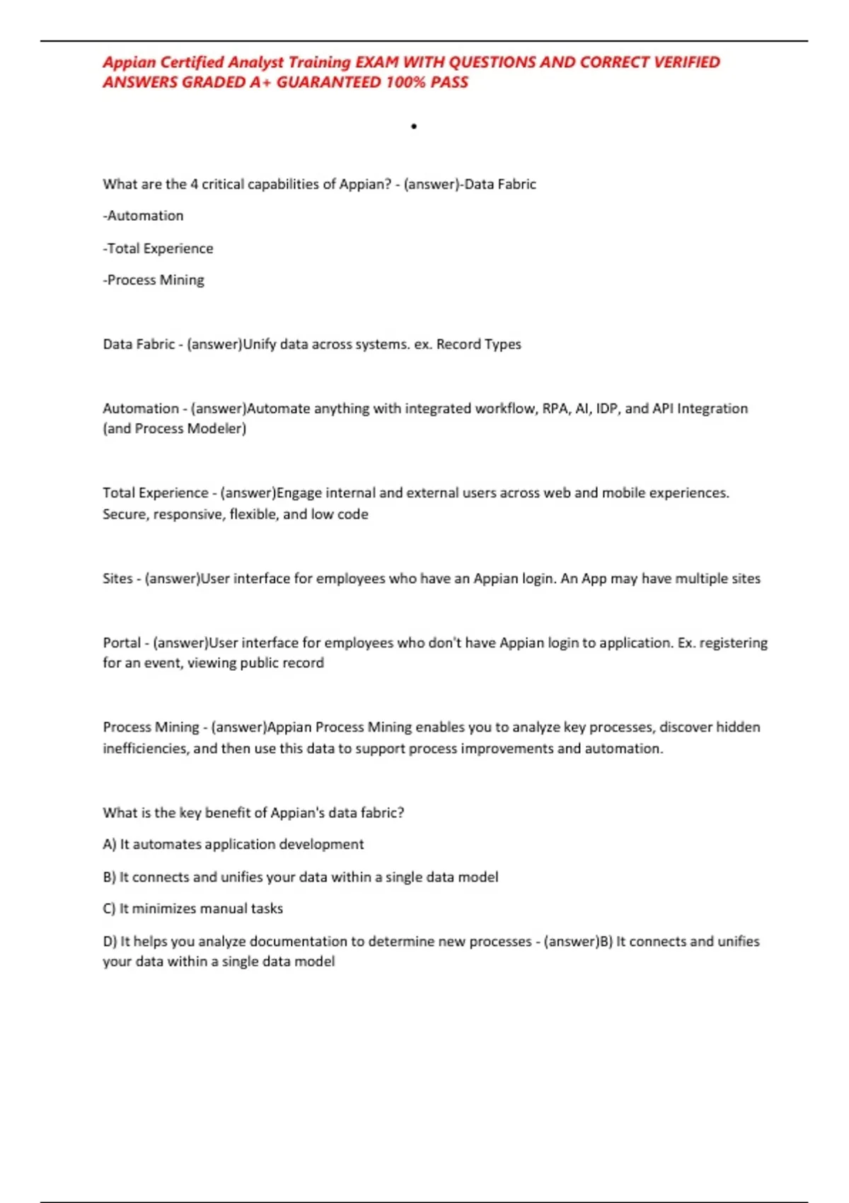 Appian Certified Analyst Training EXAM WITH QUESTIONS AND CORRECT VERIFIED ANSWERS GRADED A+ GUARANTEED 100% PASS
