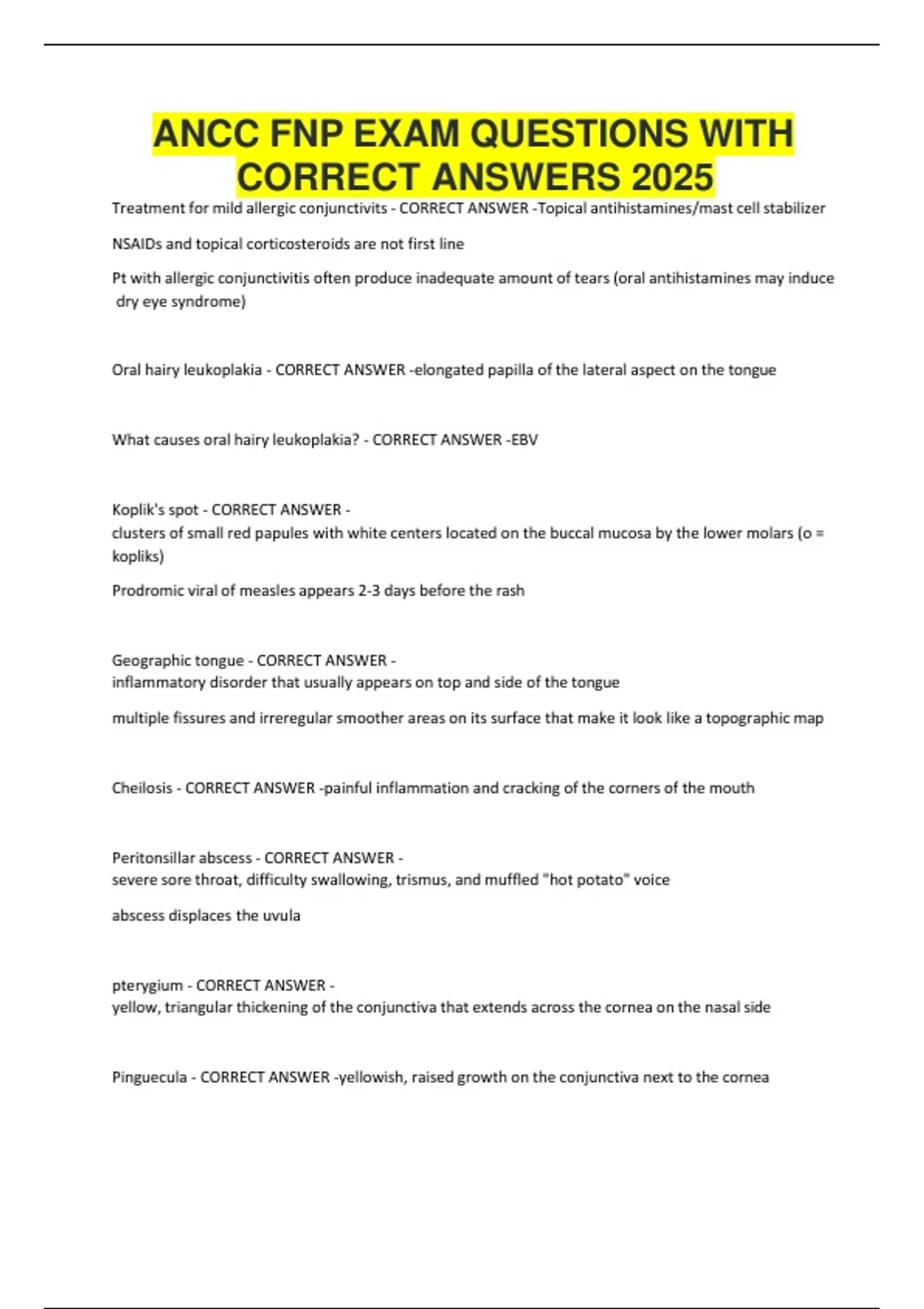 ANCC FNP EXAM QUESTIONS WITH CORRECT ANSWERS 2025