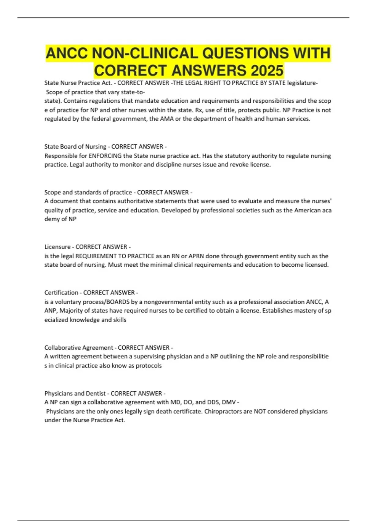 ANCC NON-CLINICAL QUESTIONS WITH CORRECT ANSWERS 2025