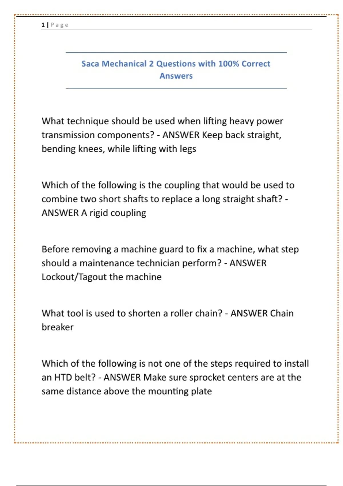Saca Mechanical 2 Questions with 100% Correct Answers