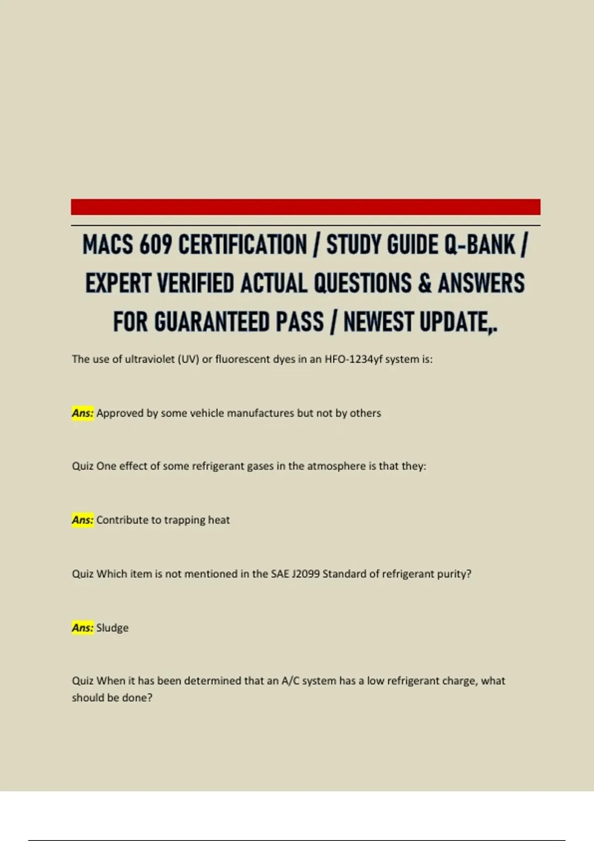 Quiz When it has been determined that an A/C system has a low refrigerant charge, what