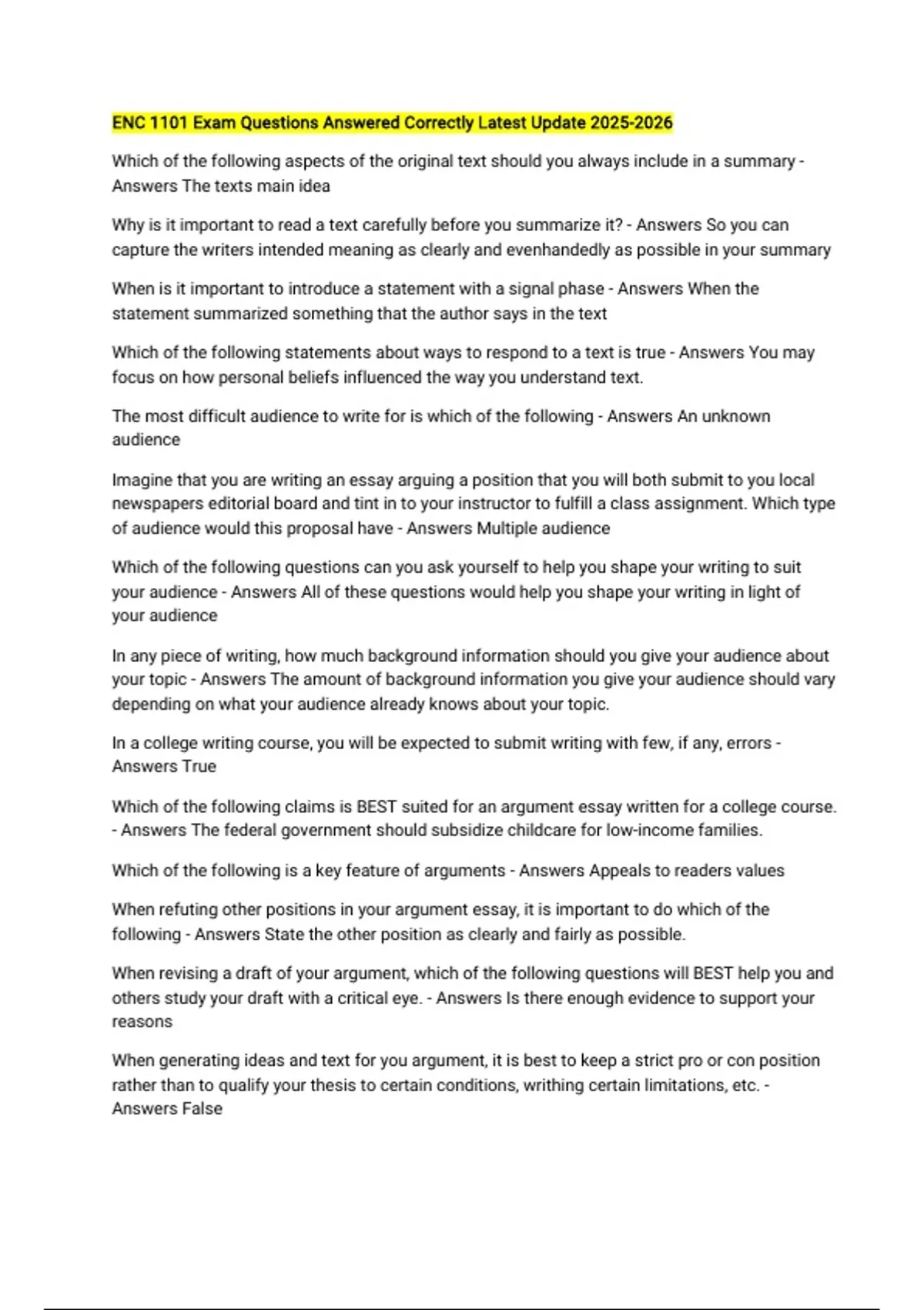 Answers False