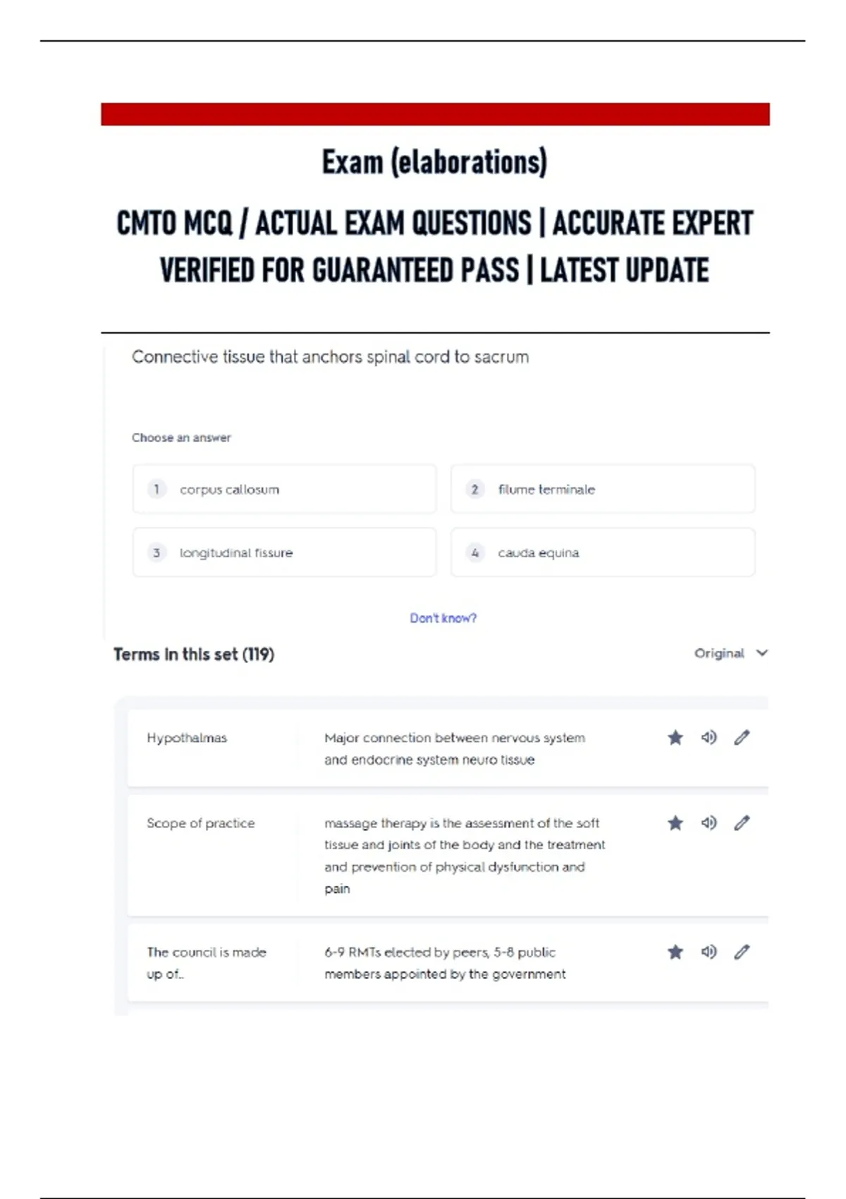 Exam (elaborations) CMTO MCQ / ACTUAL EXAM QUESTIONS | ACCURATE EXPERT VERIFIED FOR GUARANTEED PASS | LATEST UPDATE
