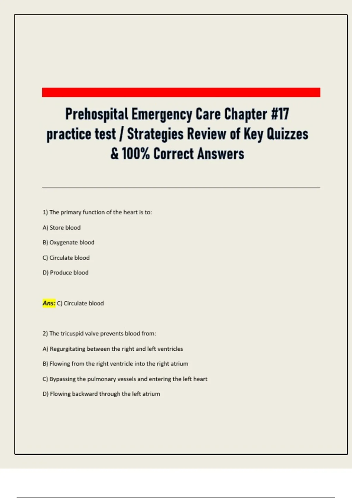Ans: C) Circulate blood