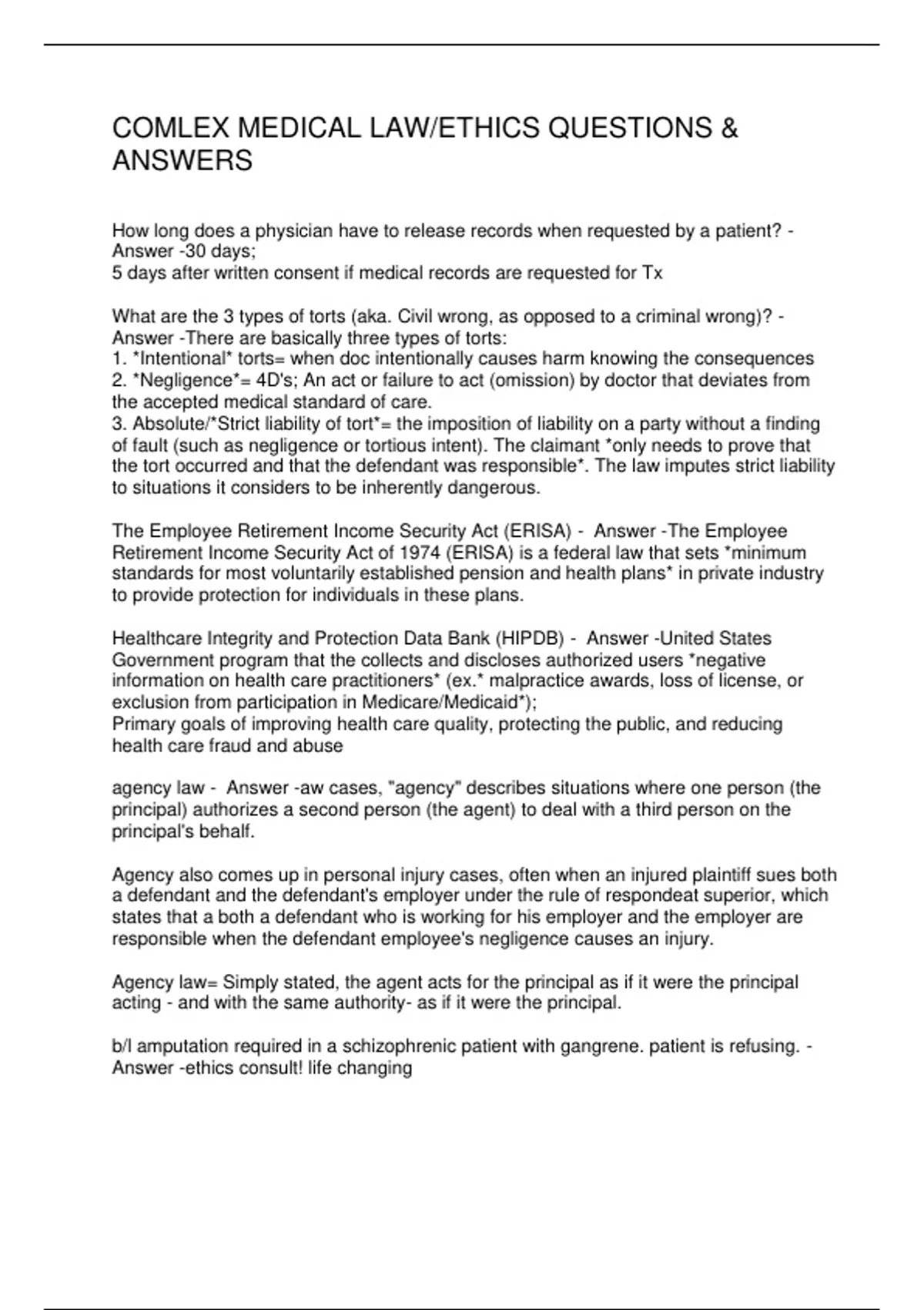 COMLEX MEDICAL LAW/ETHICS QUESTIONS &
