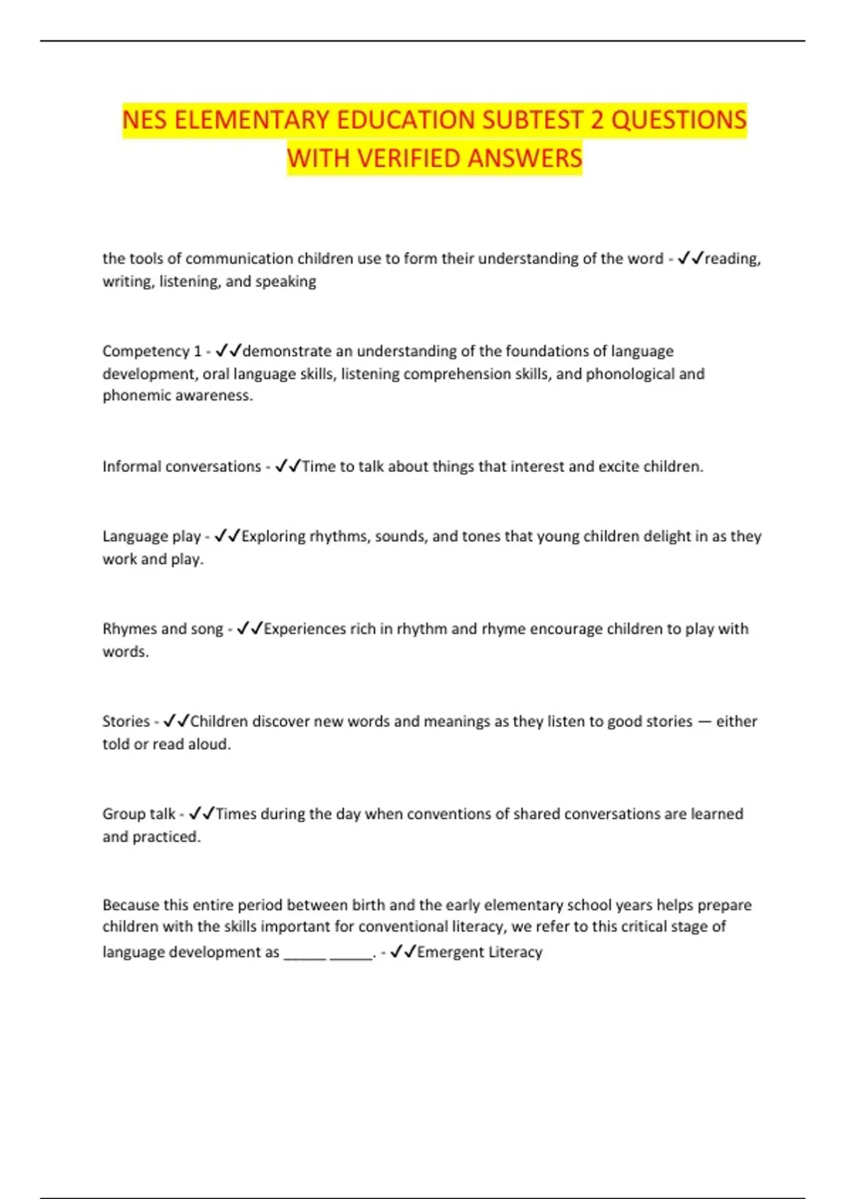 NES ELEMENTARY EDUCATION SUBTEST 2 QUESTIONS WITH VERIFIED ANSWERS
