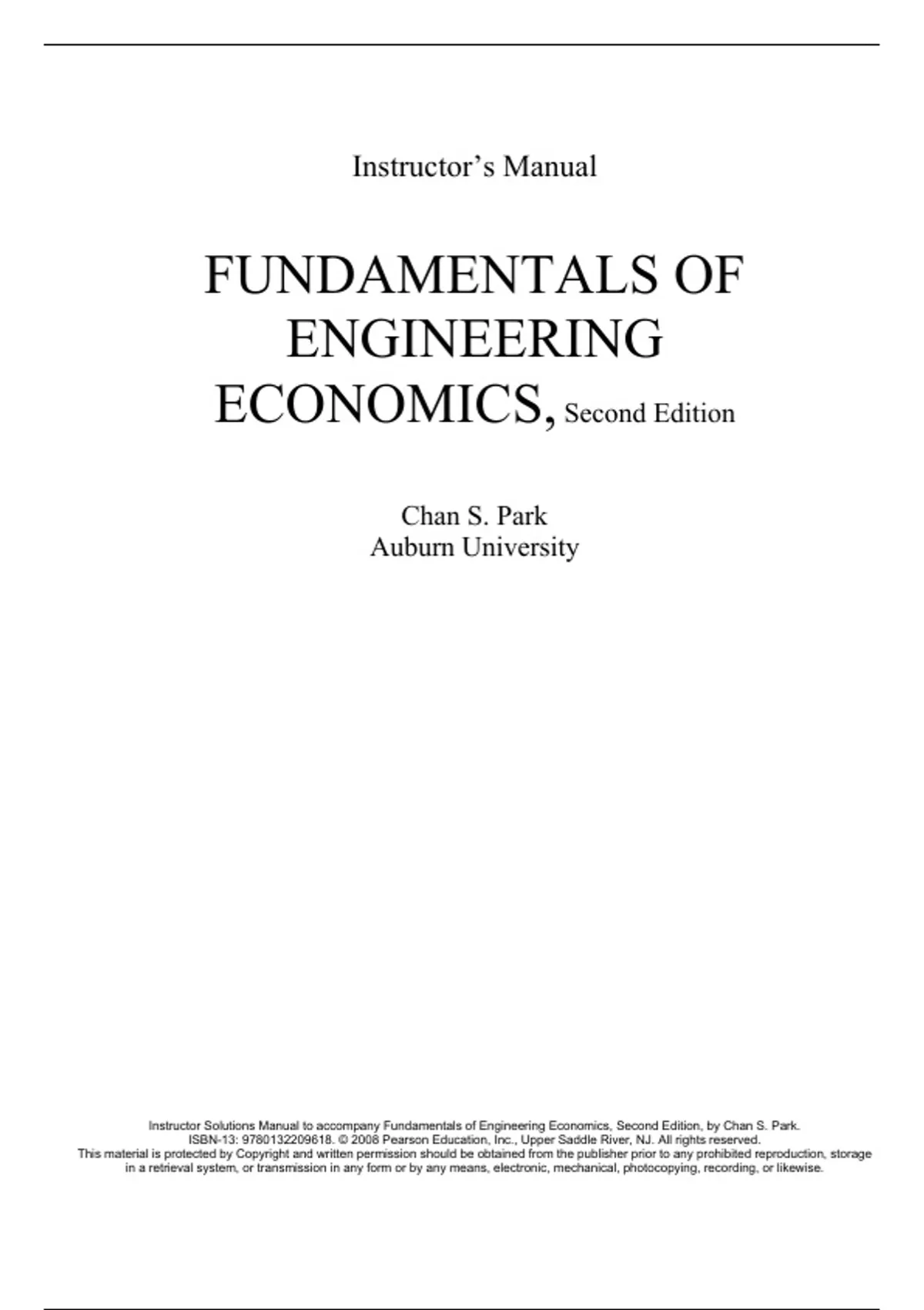 Instructor Solutions Manual to accompany Fundamentals of Engineering Economics, Second Edition, by Chan S. Park. ISBN-13: 9780132209618