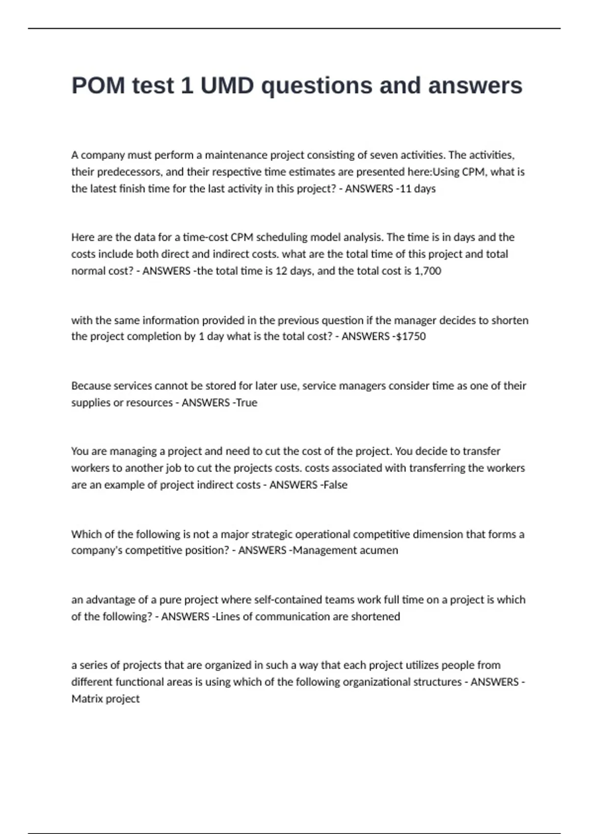 POM test 1 UMD questions and answers