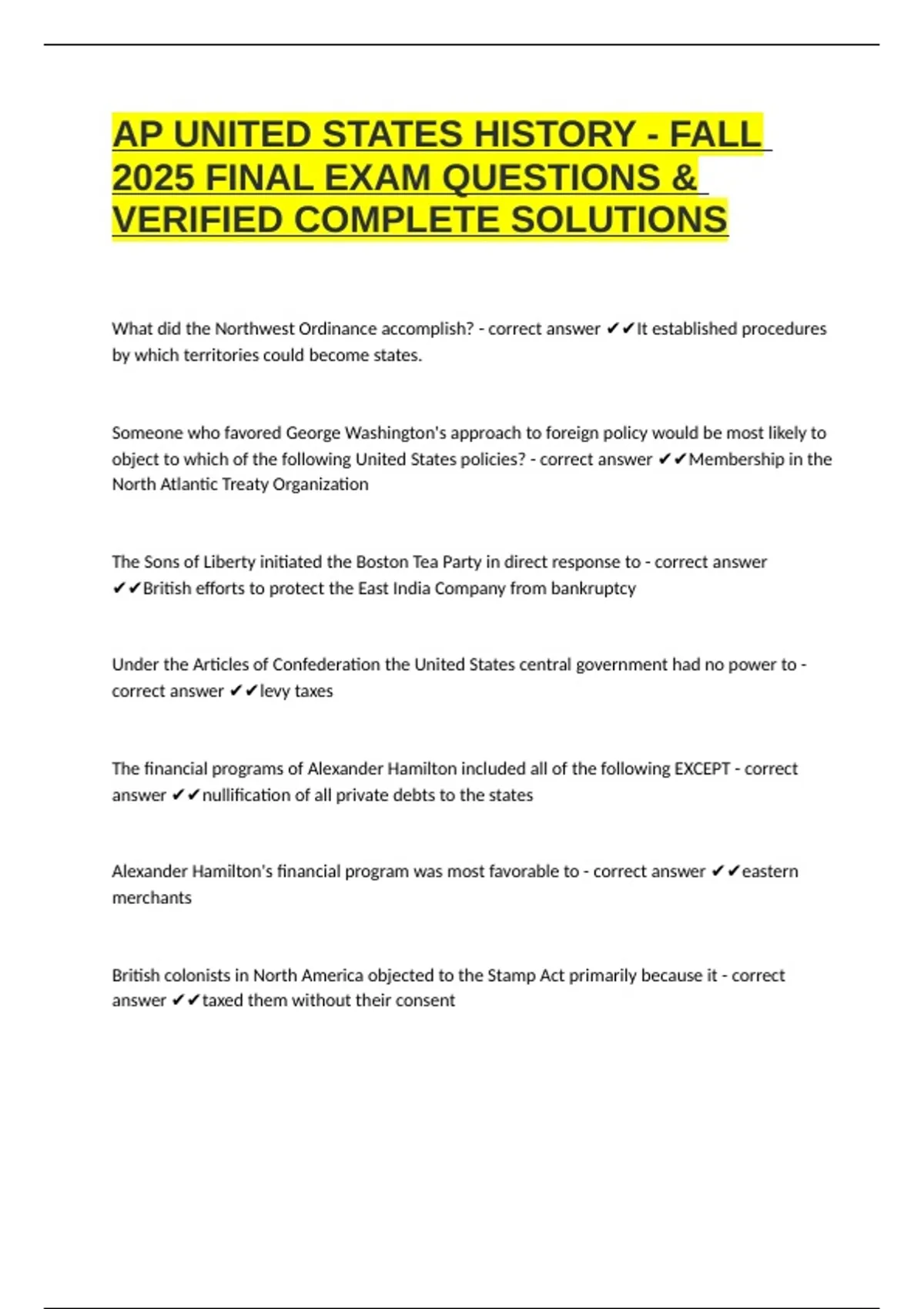 VERIFIED COMPLETE SOLUTIONS