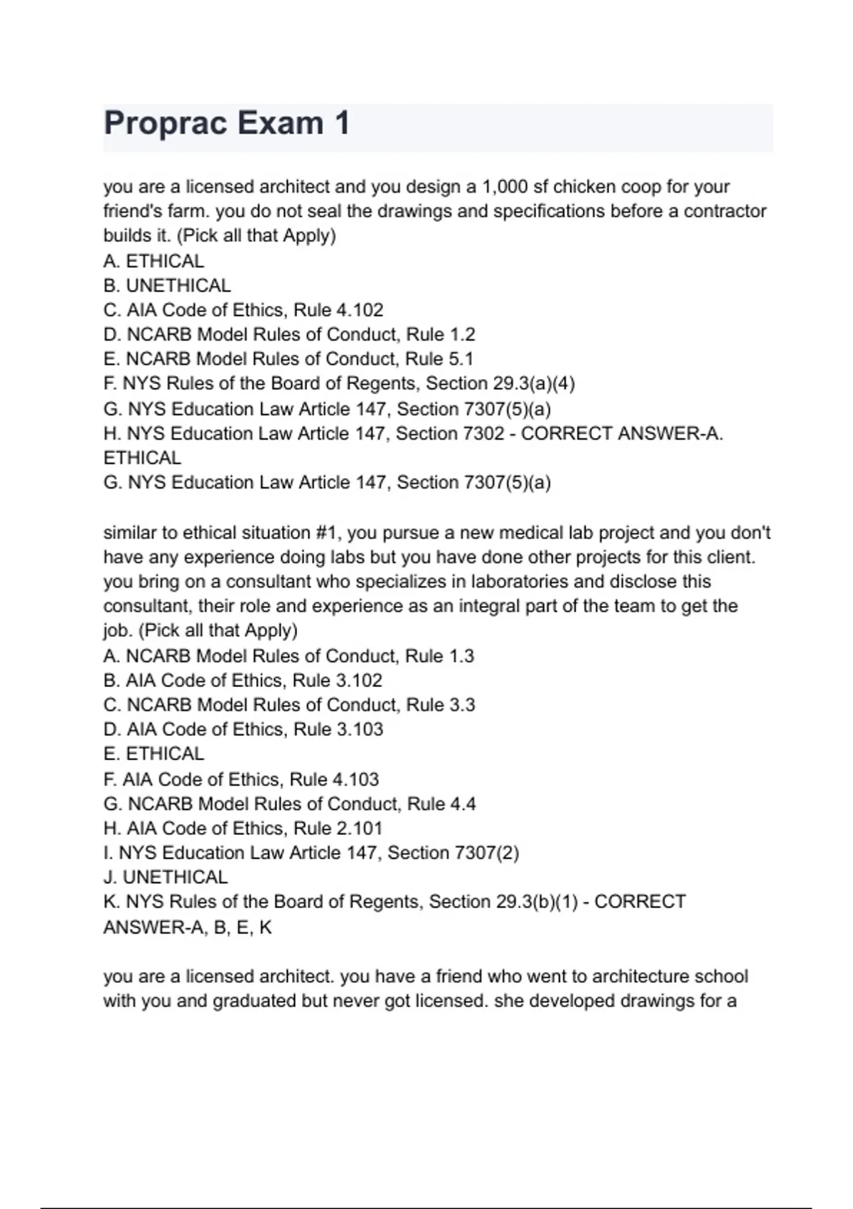 J. NCARB Model Rules of Conduct, Rule 3.7 - CORRECT ANSWER-A, B, F, H,