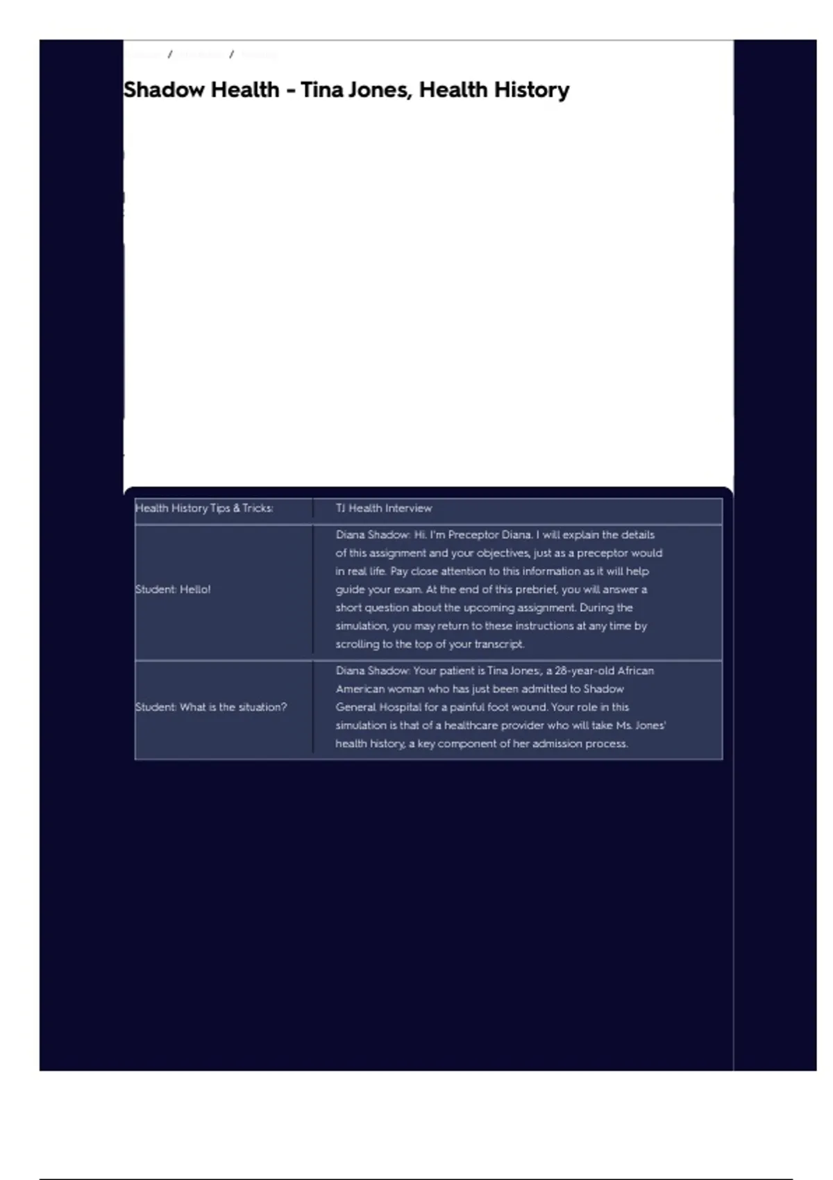 Shadow Health – Tina Jones Health History | Nursing Simulation & Patient Assessment | Complete Guide