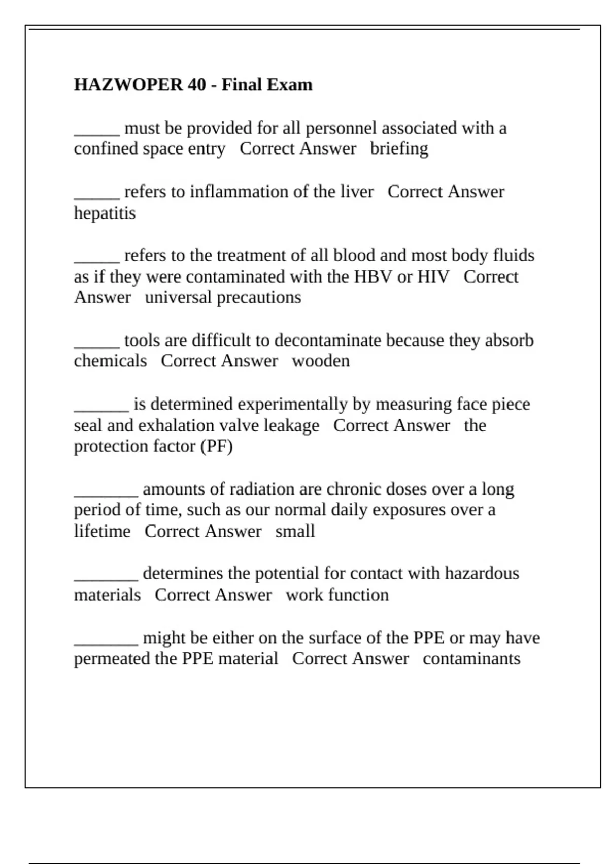 (PF)(PEL or TLV) = Correct Answer Maximum Value Limit
