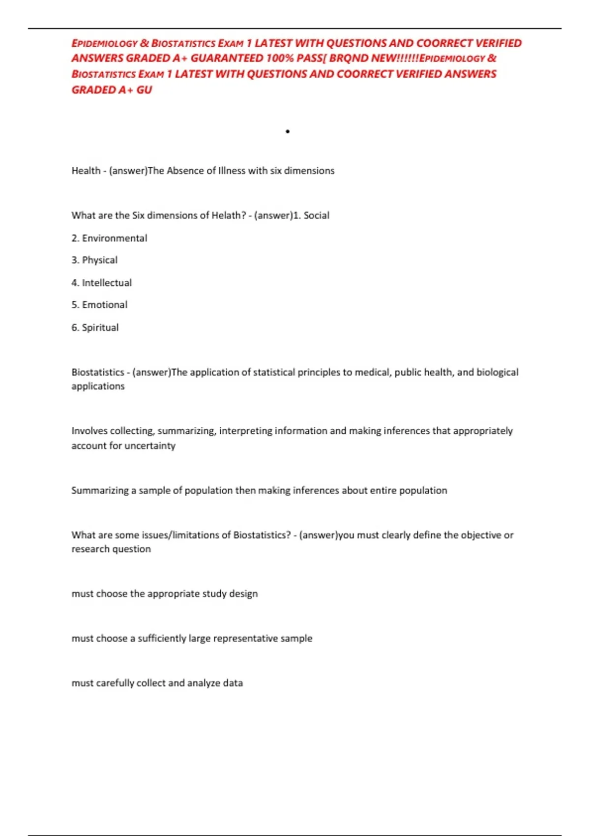 ANSWERS GRADED A+ GUARANTEED 100% PASS[ BRQND NEW!!!!!!EPIDEMIOLOGY &
