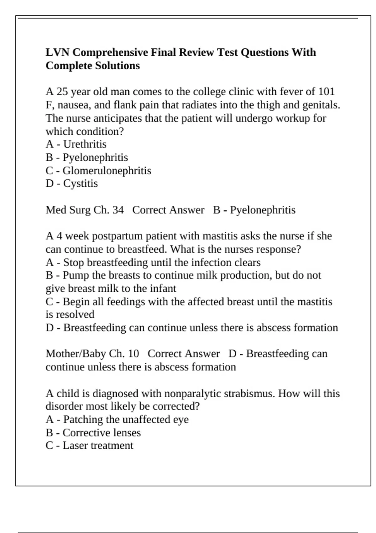 Med Surg Ch. 34 Correct Answer B - Pyelonephritis