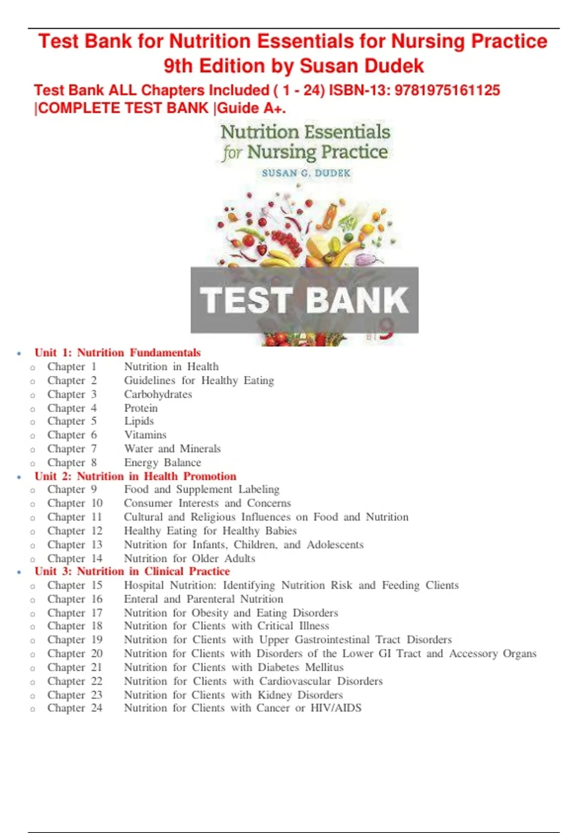 Test Bank ALL Chapters Included ( 1 - 24) ISBN-13: 9781975161125