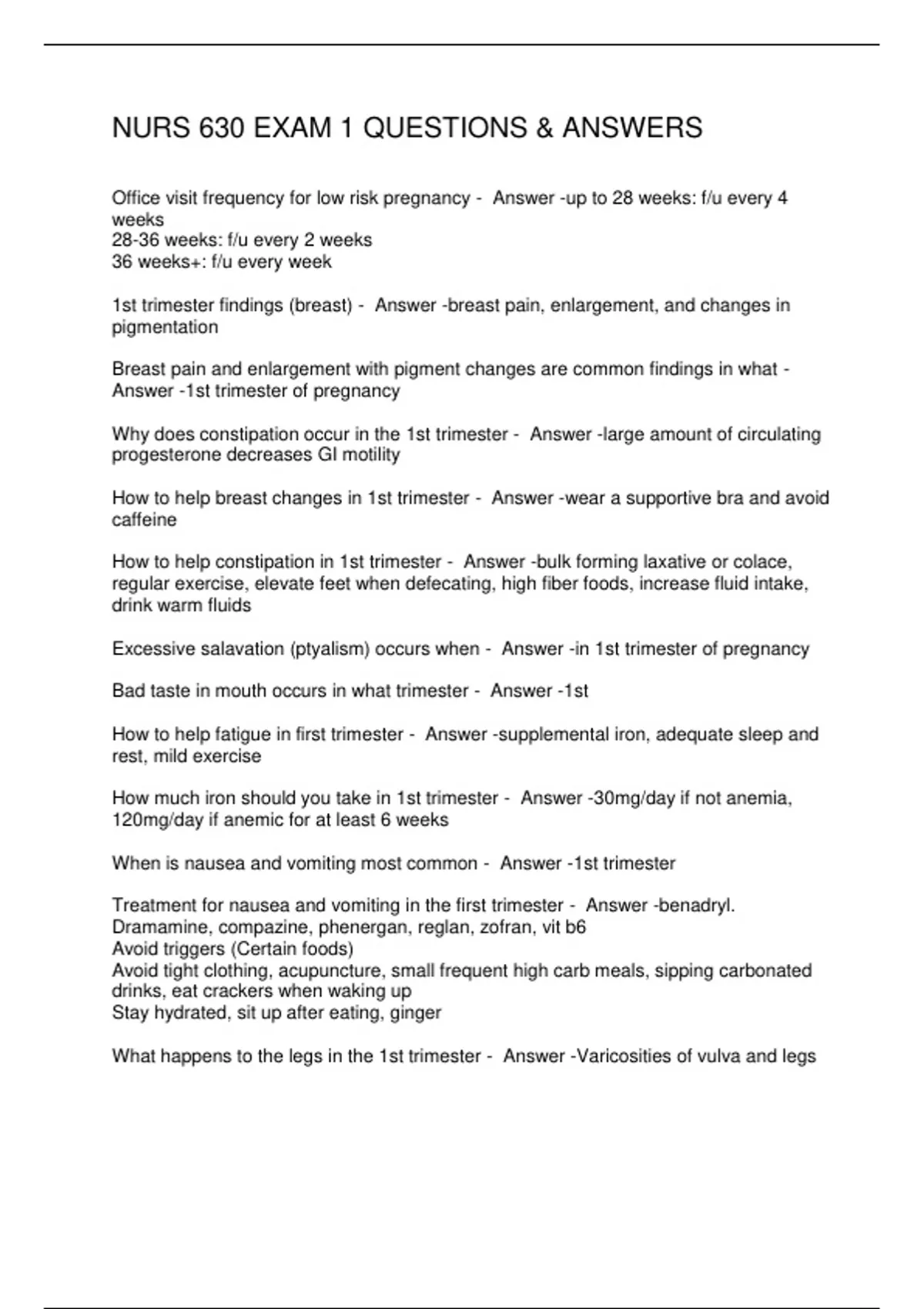 NURS 630 EXAM 1 QUESTIONS & ANSWERS