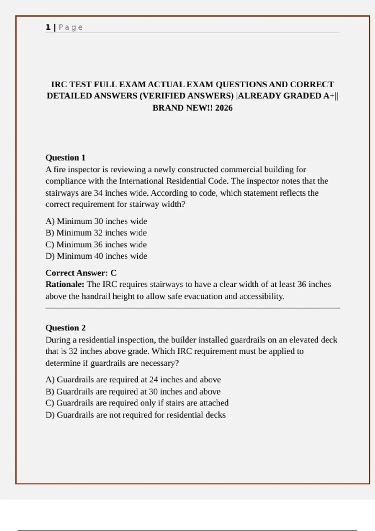IRC TEST FULL EXAM ACTUAL EXAM QUESTIONS AND CORRECT