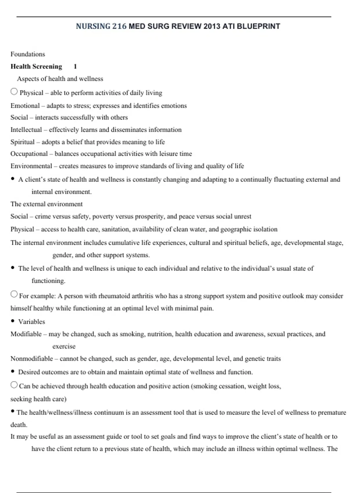 , NURSING 216 MED SURG REVIEW 2013 ATI BLUEPRINT