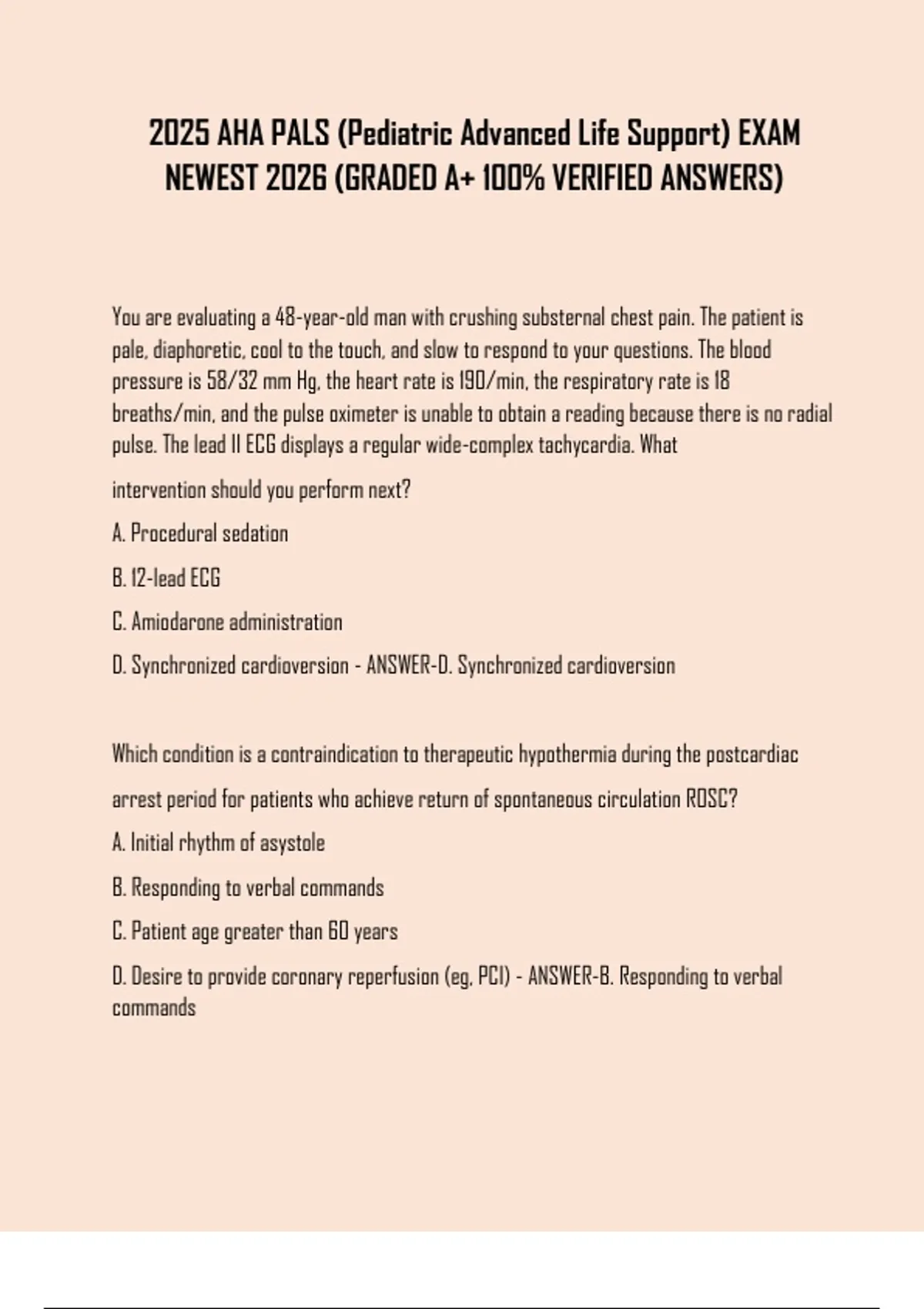 D. NSR on monitor but no pulse - ANSWER-A. Unstable supraventricular tachycardia