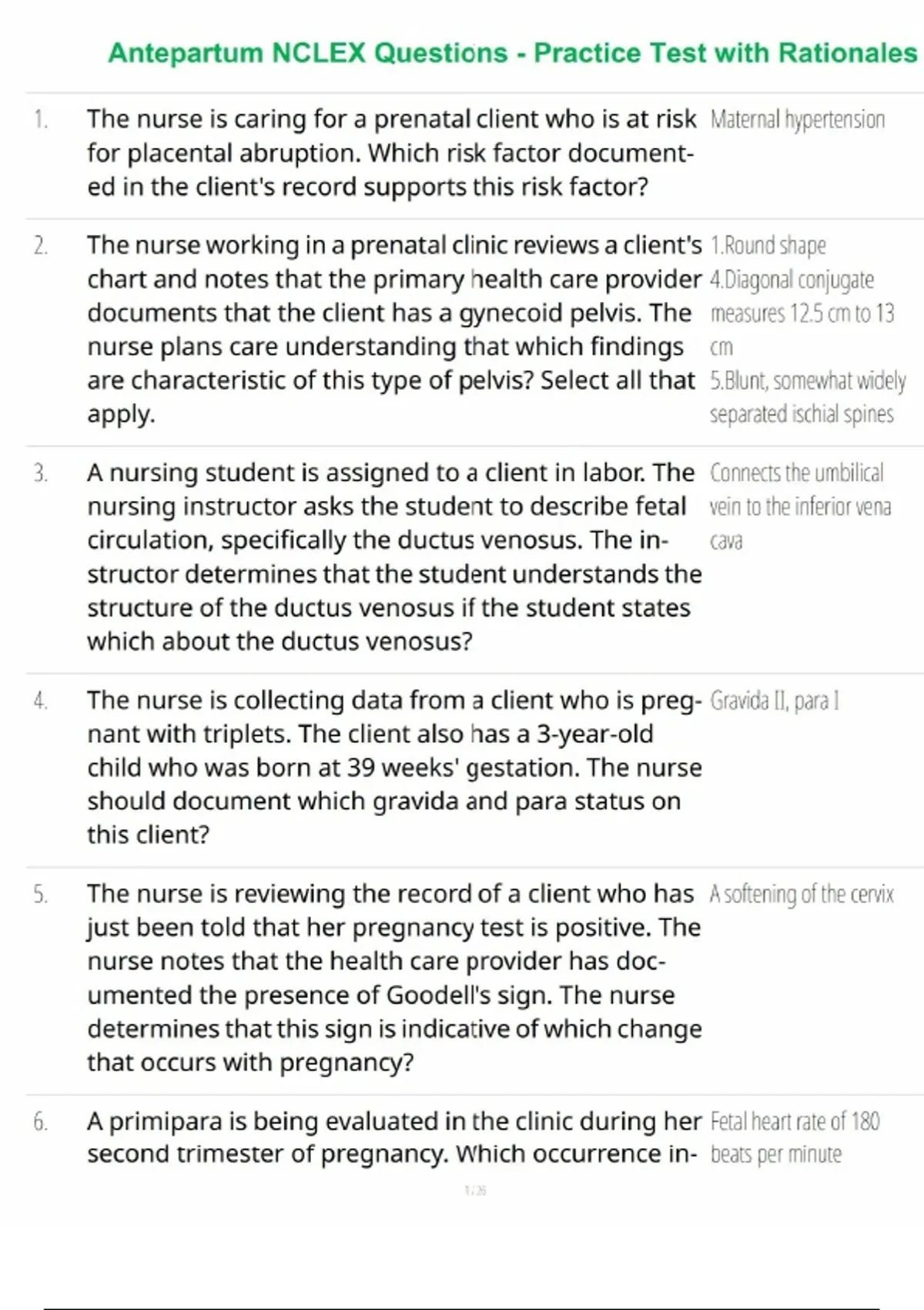 Antepartum NCLEX Questions - Practice Test with Rationales