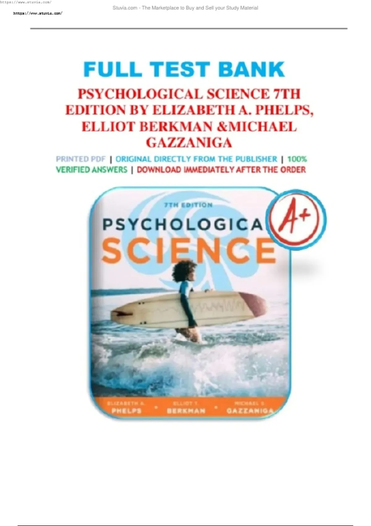 Test Bank for Psychological Science 7th Edition ( by Elizabeth A. Phelps ,Elliot Berkman ) All Chapters 1-15| Latest Edition 2025||Ace your exams