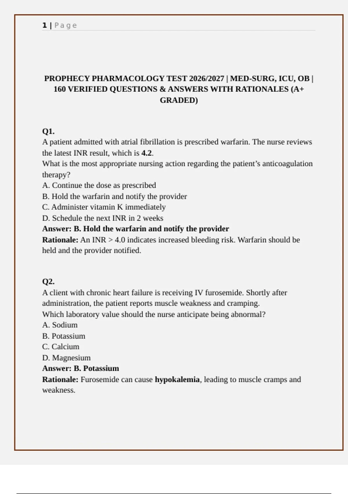 PROPHECY PHARMACOLOGY TEST 2026/2027 | MED-SURG, ICU, OB |