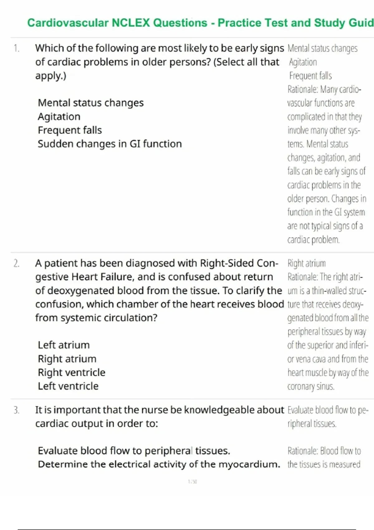 Cardiovascular NCLEX Questions - Practice Test and Study Guide