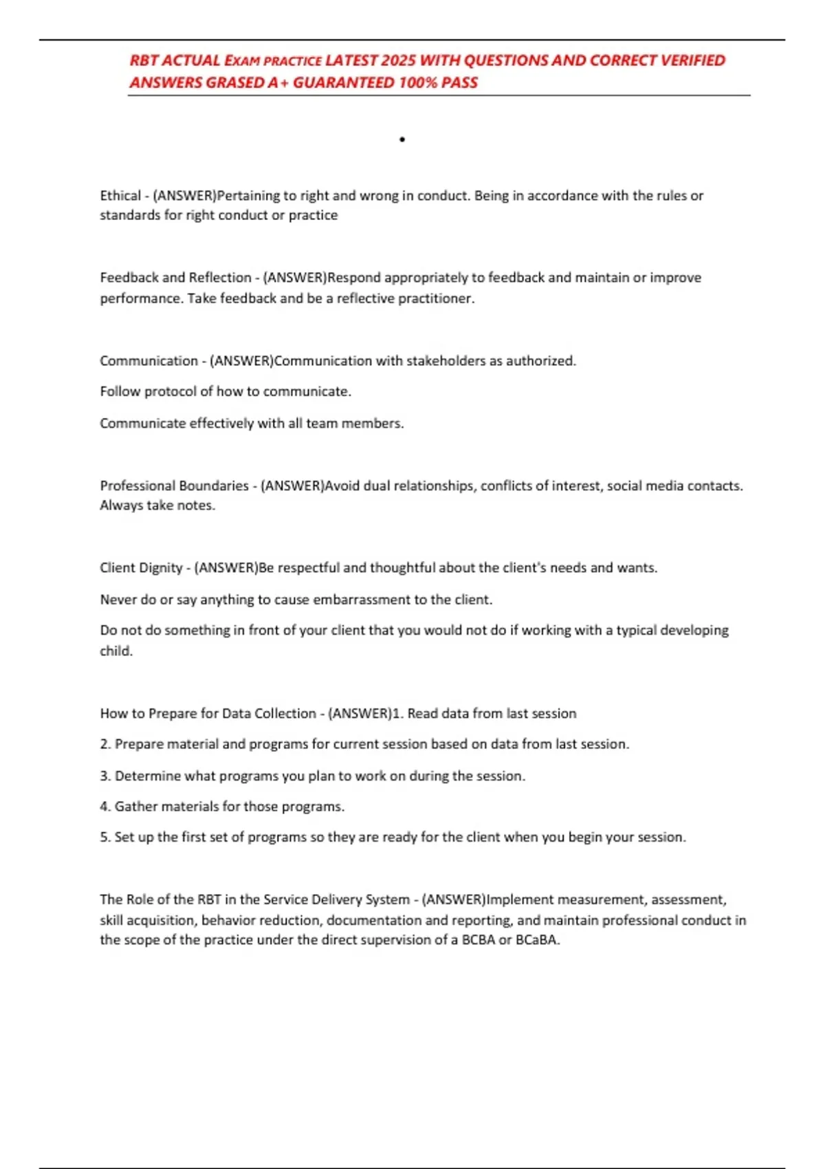 , RBT ACTUAL EXAM PRACTICE LATEST 2025 WITH QUESTIONS AND CORRECT VERIFIED