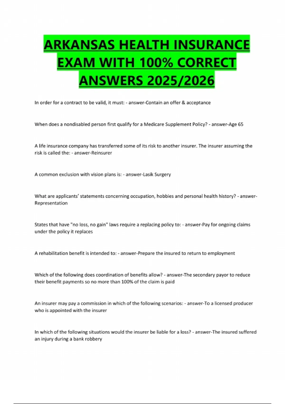 ARKANSAS HEALTH INSURANCE EXAM WITH 100% CORRECT ANSWERS 2025/2026