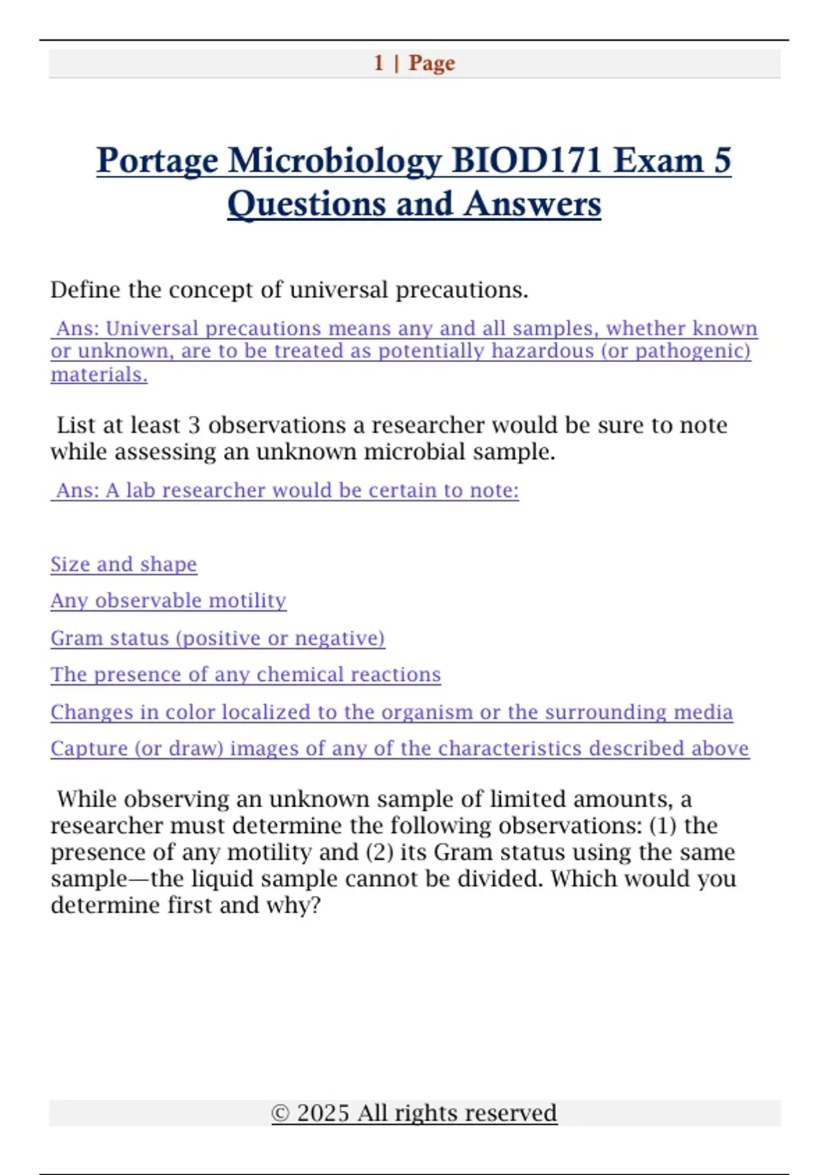 Portage Microbiology BIOD171 Exam 5 Questions and Answers