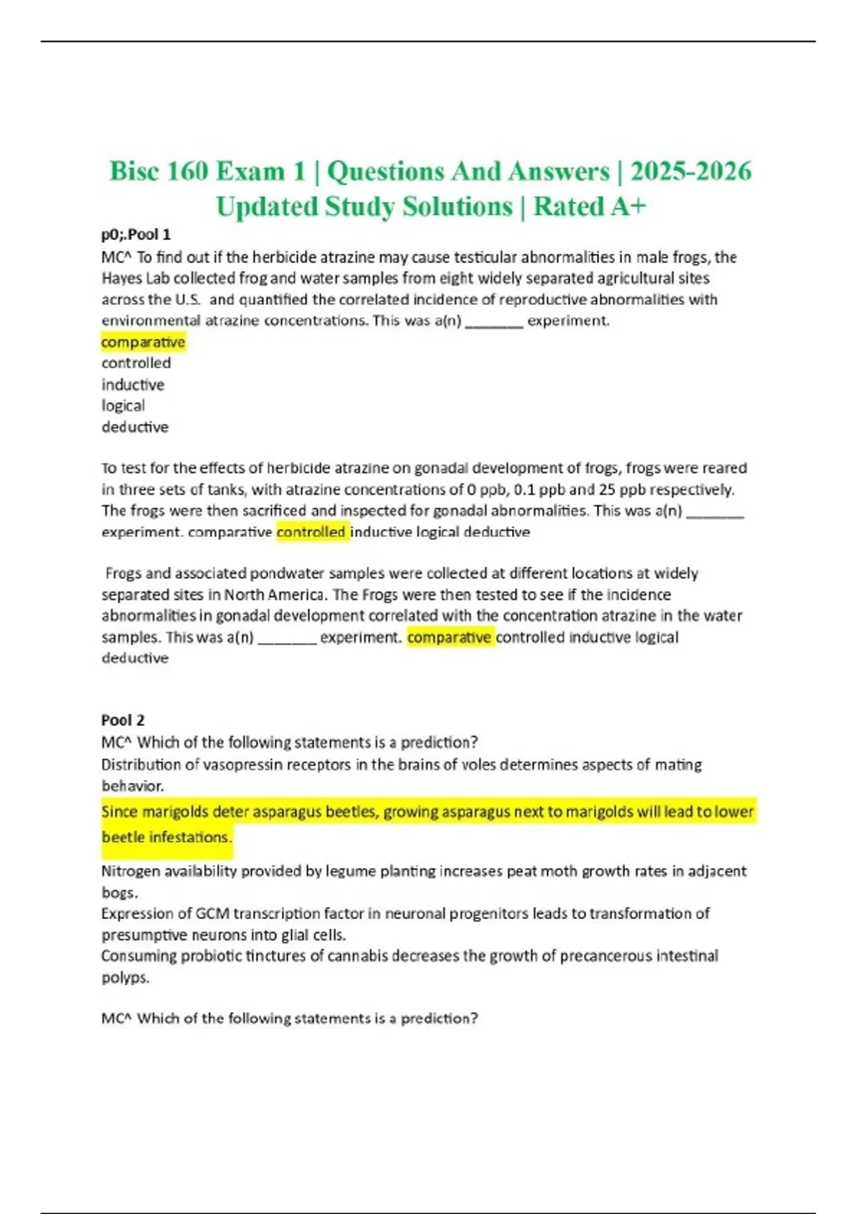 bisc 160 exam 1 questions and anwers 2025 202