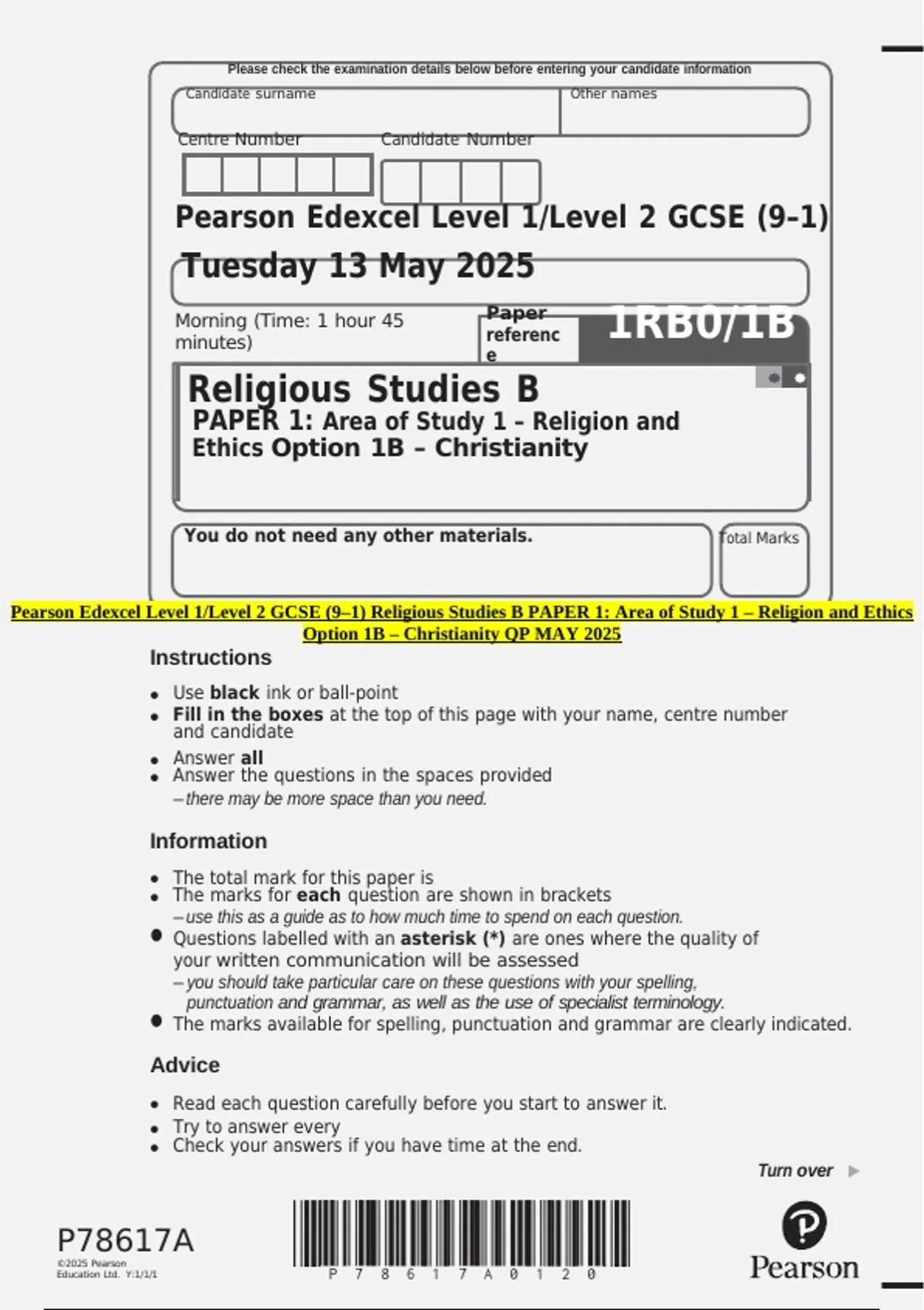 Option 1B – Christianity QP MAY 2025