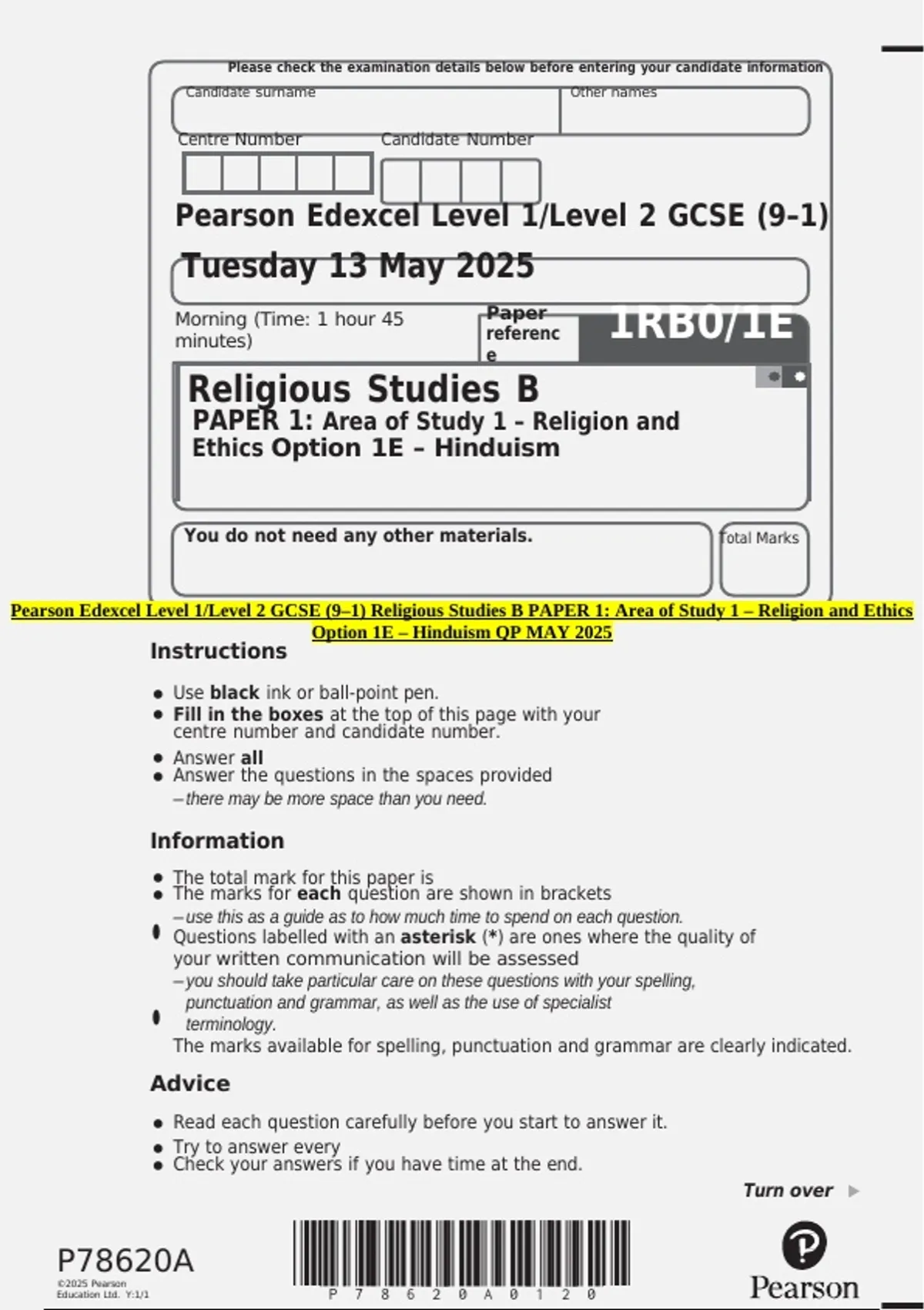Pearson Edexcel Level 1/Level 2 GCSE (9–1) Religious Studies B PAPER 1: Area of Study 1 – Religion and Ethics