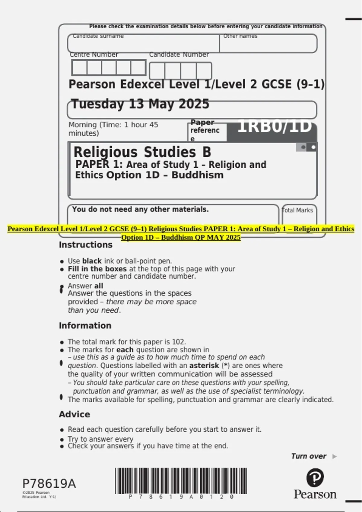 Option 1D – Buddhism QP MAY 2025
