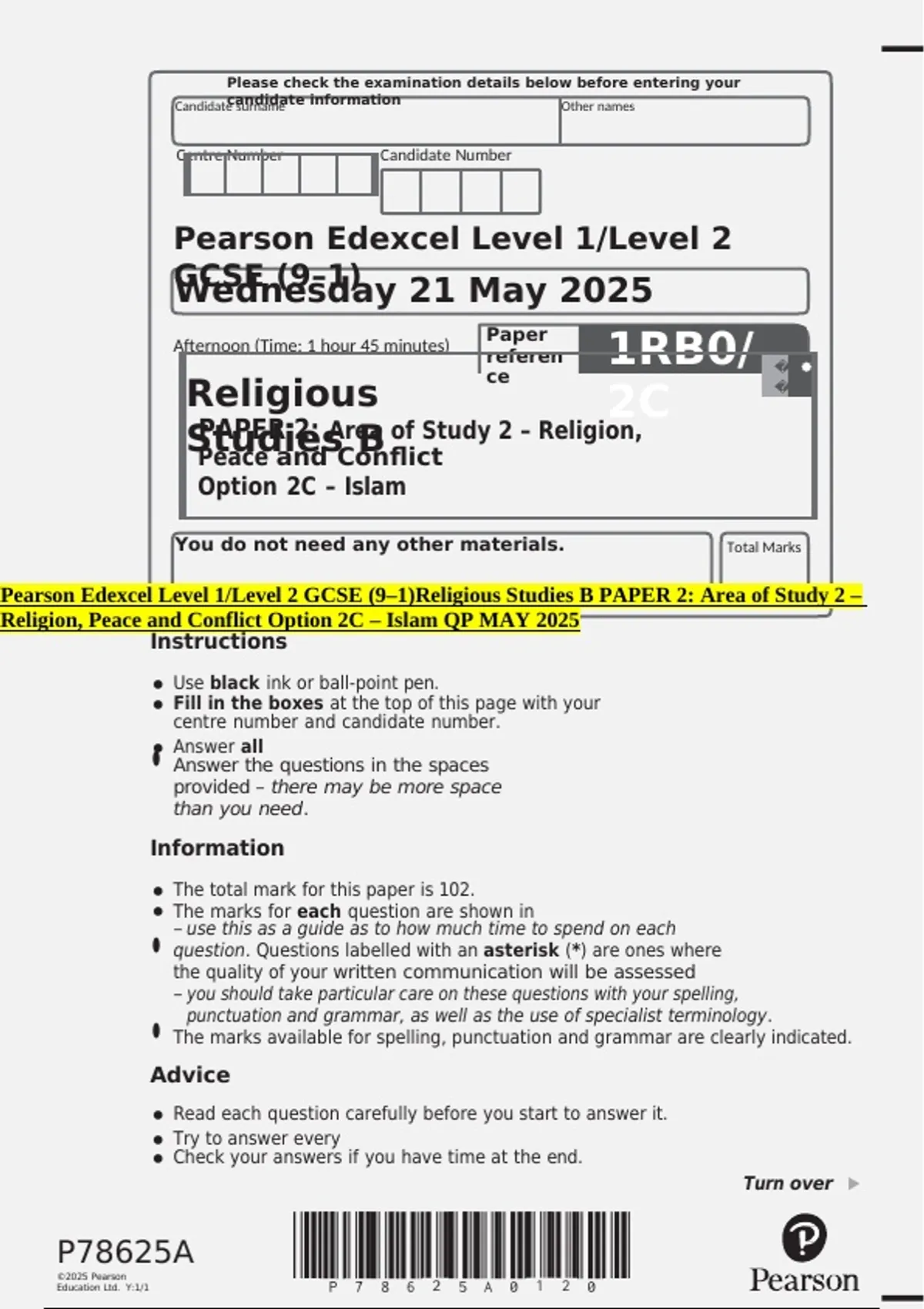 Religion, Peace and Conflict Option 2C – Islam QP MAY 2025