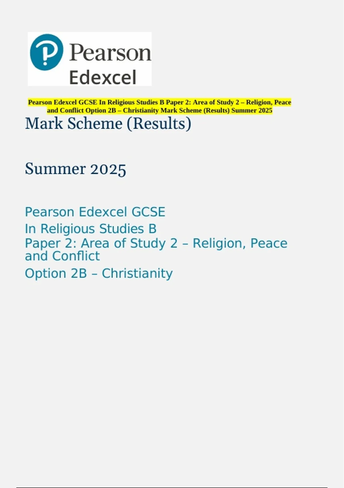 and Conflict Option 2B – Christianity Mark Scheme (Results) Summer 2025