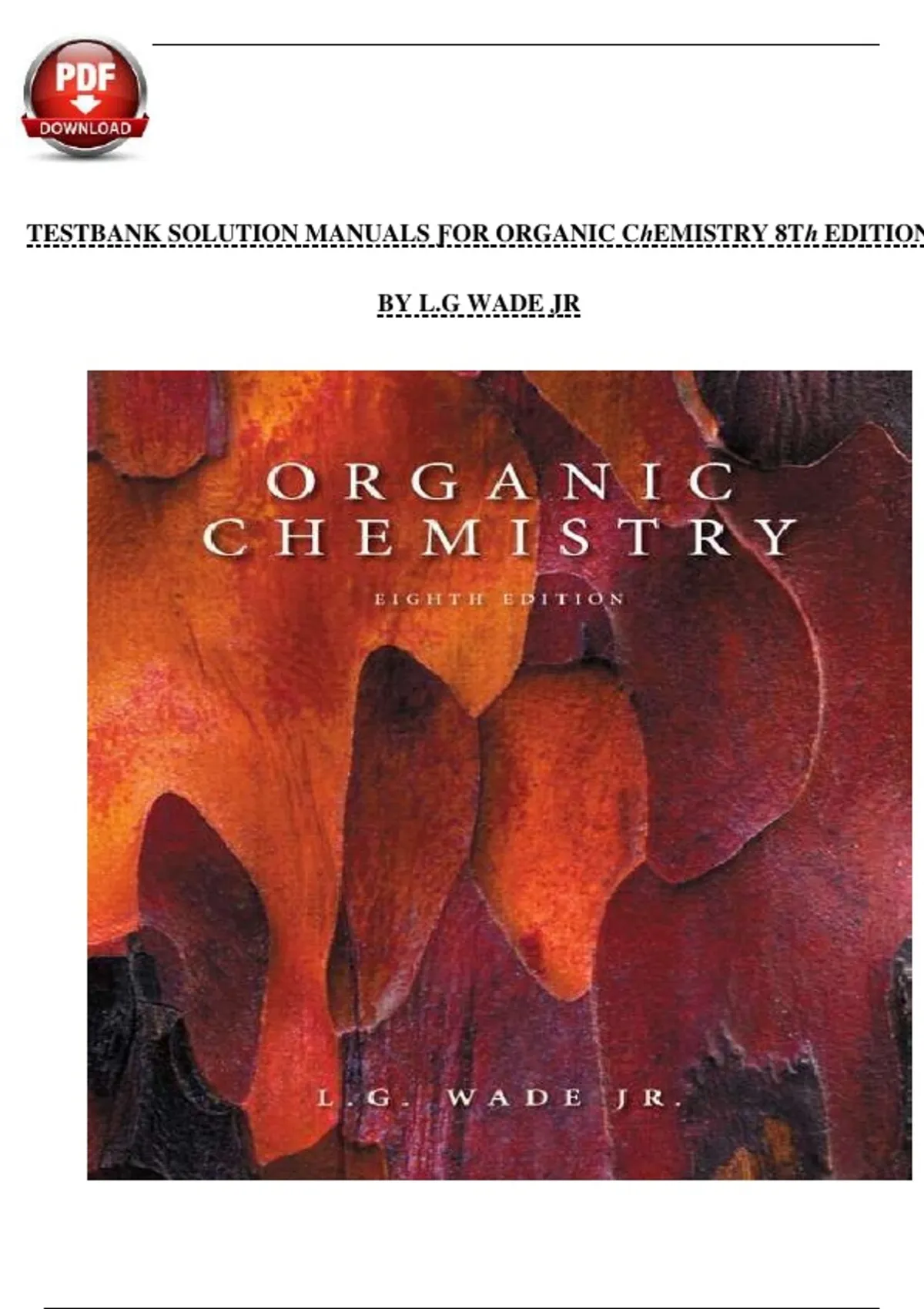 This is the complete 8th Edition Organic Chemistry test bank and solution manual by L.G. Wade Jr. It includes step-by-step solutions, verified answers, and a full range of practice problems. Covers fundamental concepts such as structure and bonding, stereochemistry, reaction mechanisms, spectroscopy, and advanced synthesis. Perfect for students preparing for exams, assignments, and in-depth study of organic chemistry. organic chemistry, CHEM231, Wade 8th edition, test bank, solution manual, stereochemistry, spectroscopy, reaction mechanisms, synthesis, exam review