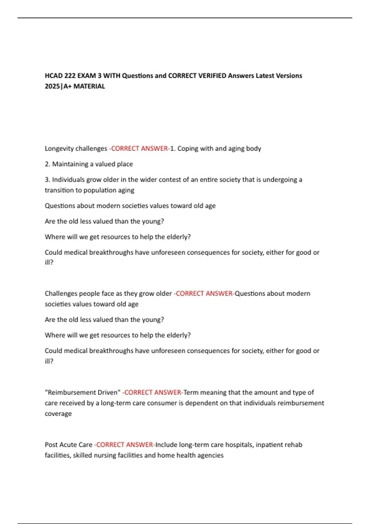 HCAD 222 EXAM 3 WITH Questions and CORRECT VERIFIED Answers Latest Versions