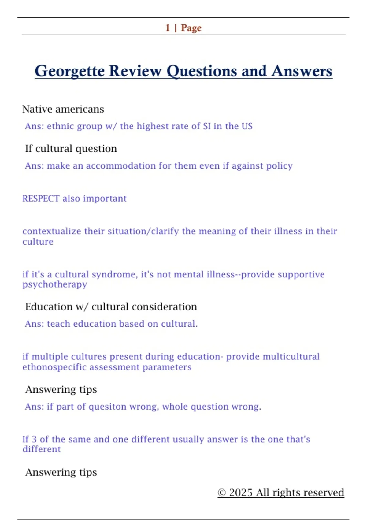 Georgette Review Questions and Answers