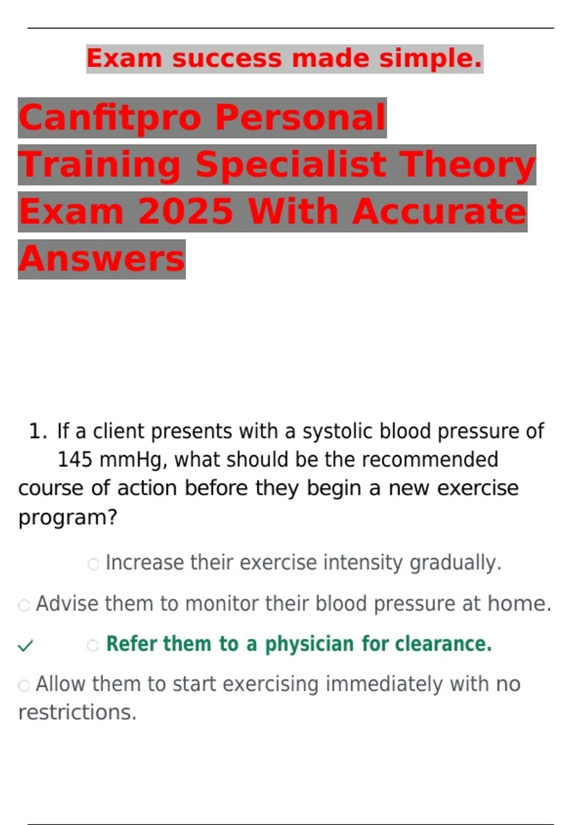 1. If a client presents with a systolic blood pressure of